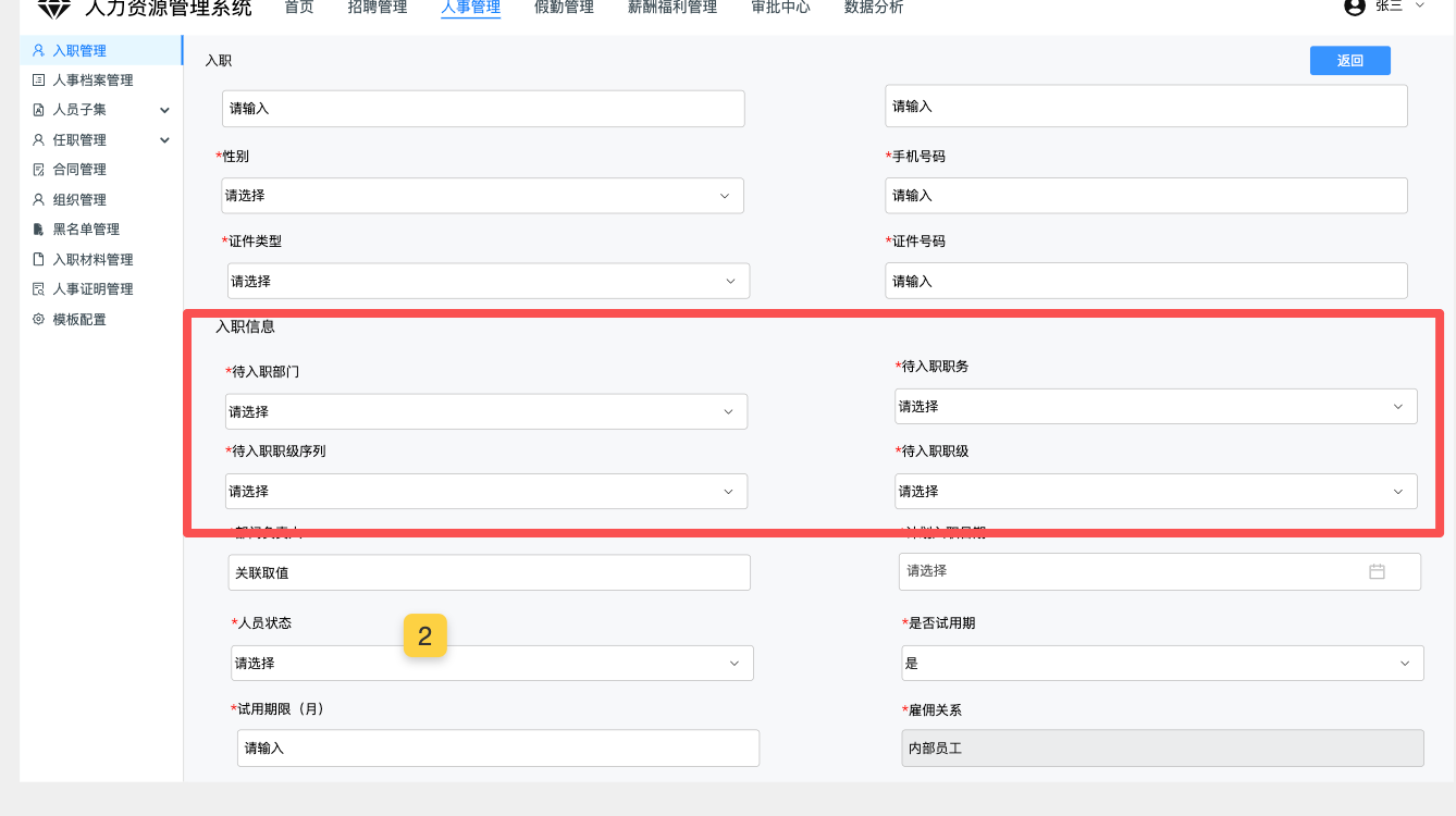 不同类别的员工新增表单字段不一致,需保持统一