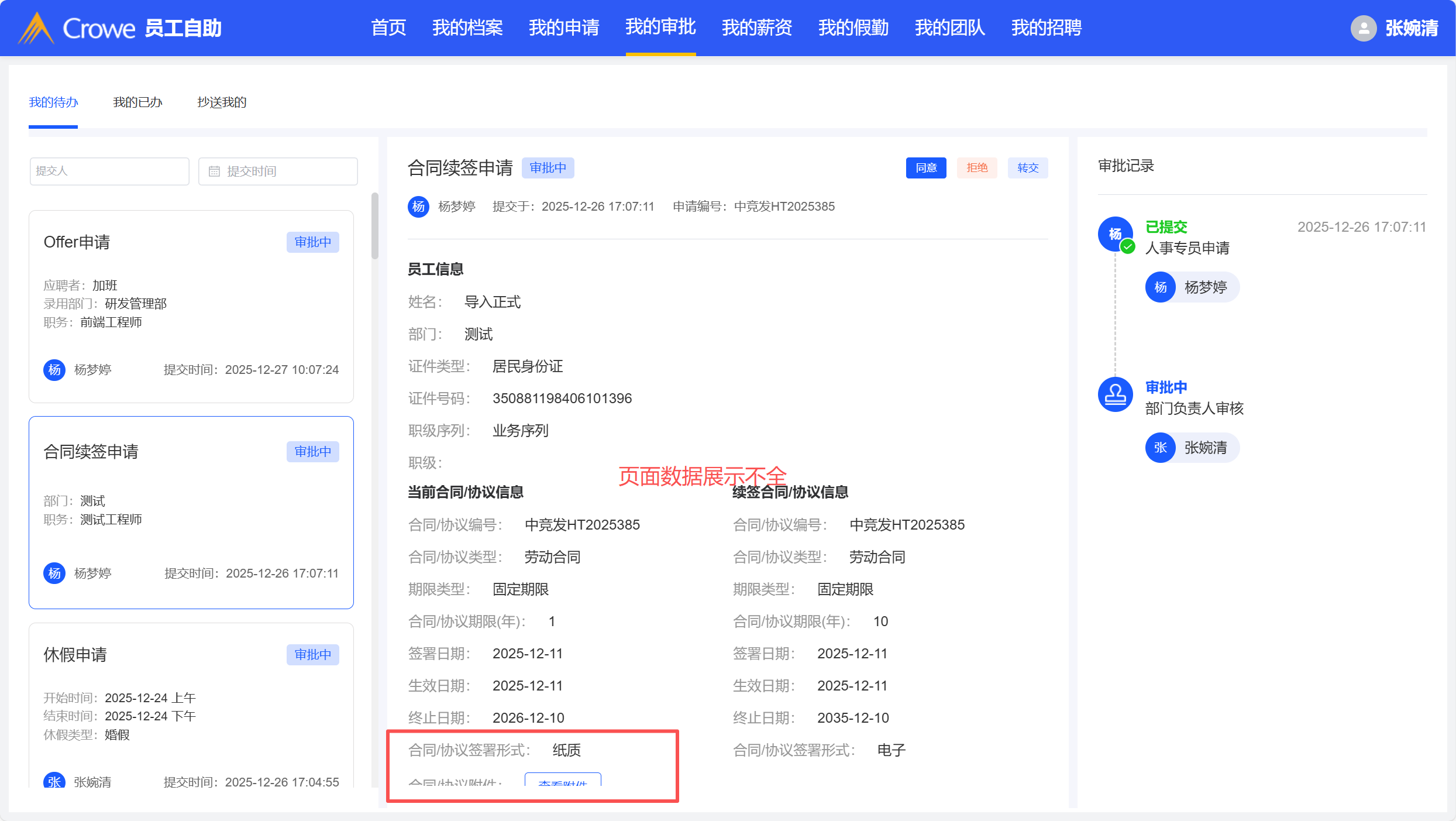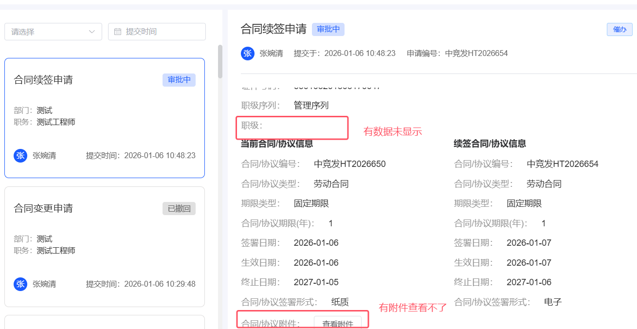 合同续签审批详情页数据展示不全