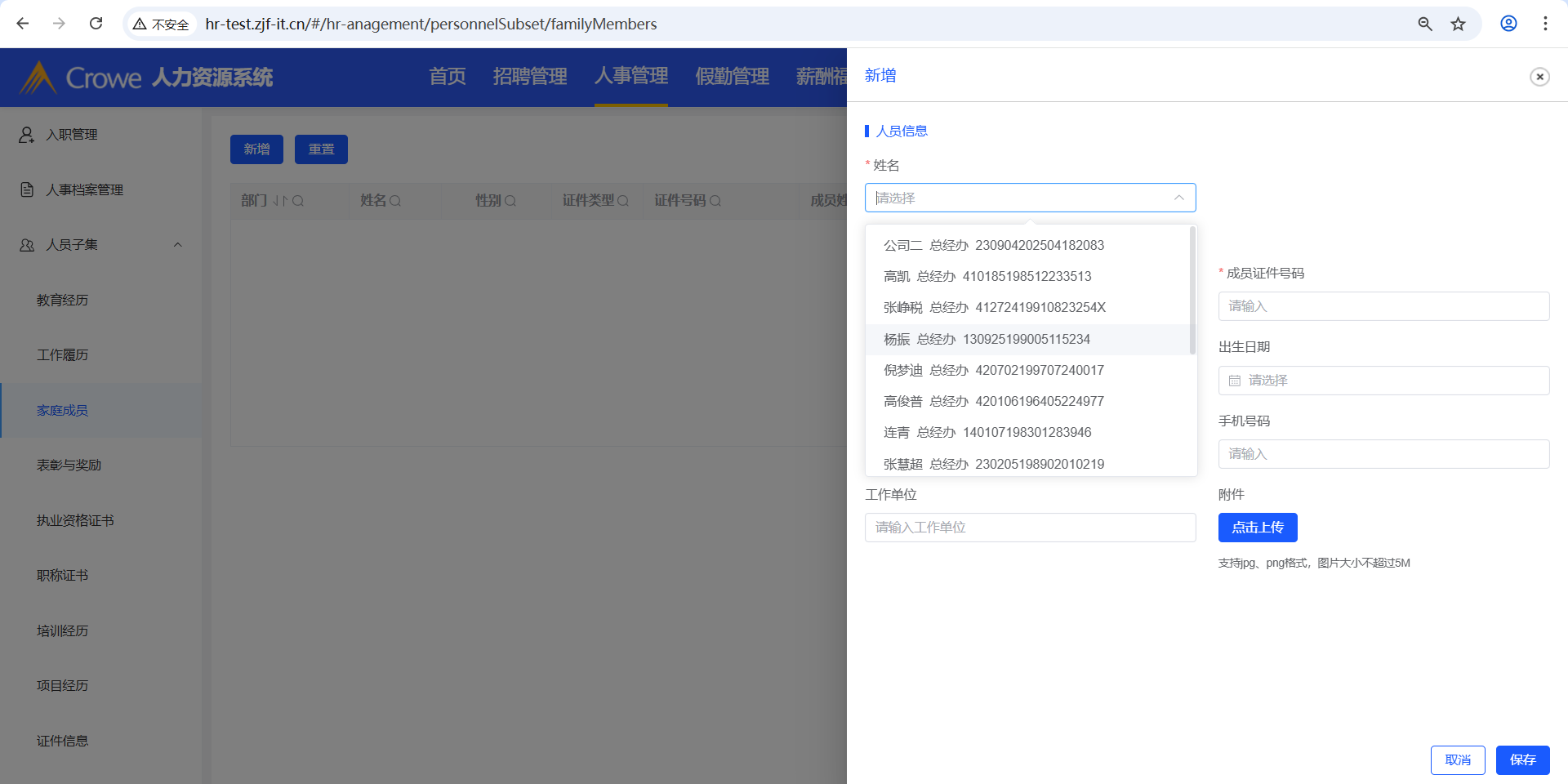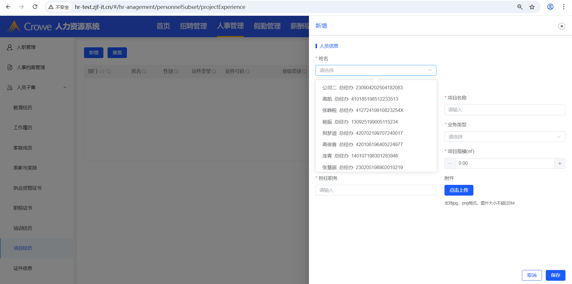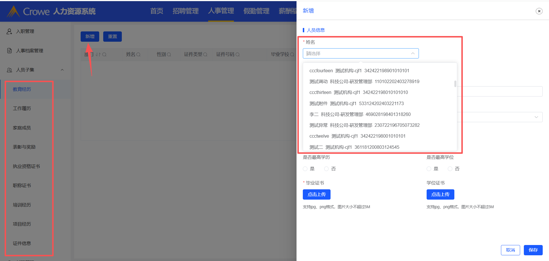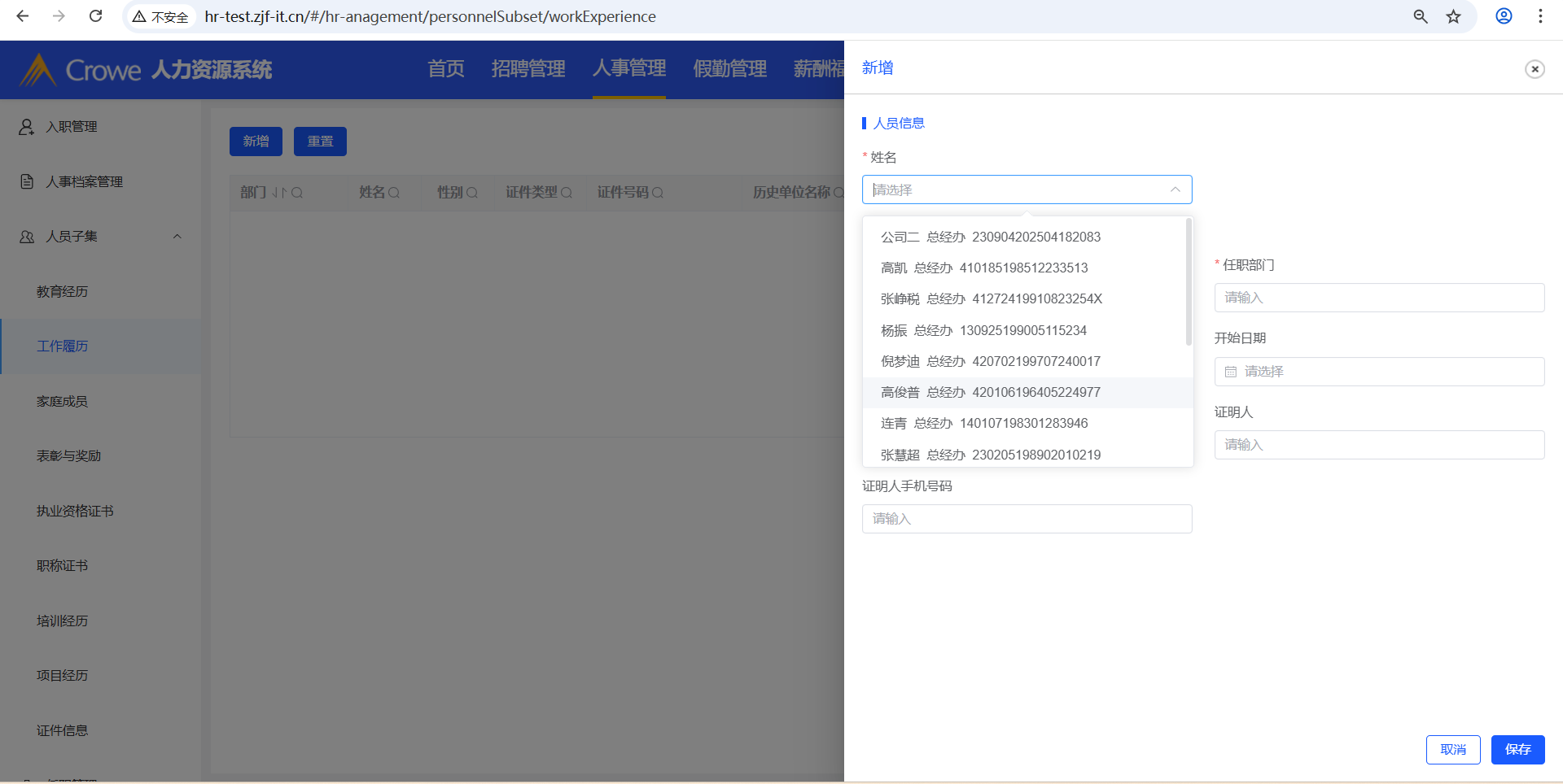 已关闭人力资源系统-人事管理-人员子集涉及到新增的操作,其新增的姓名下拉框,需做权限限制,当前下拉框显示所有人名(接口:/employee/info/getList)