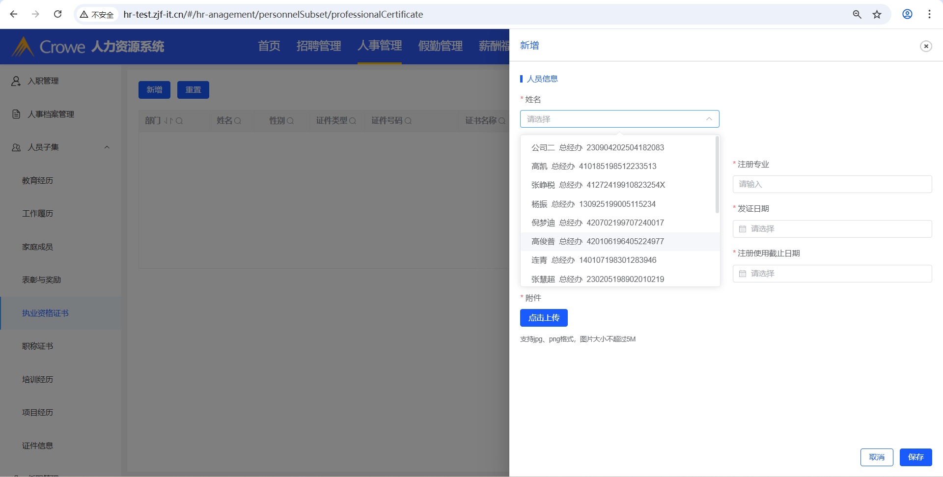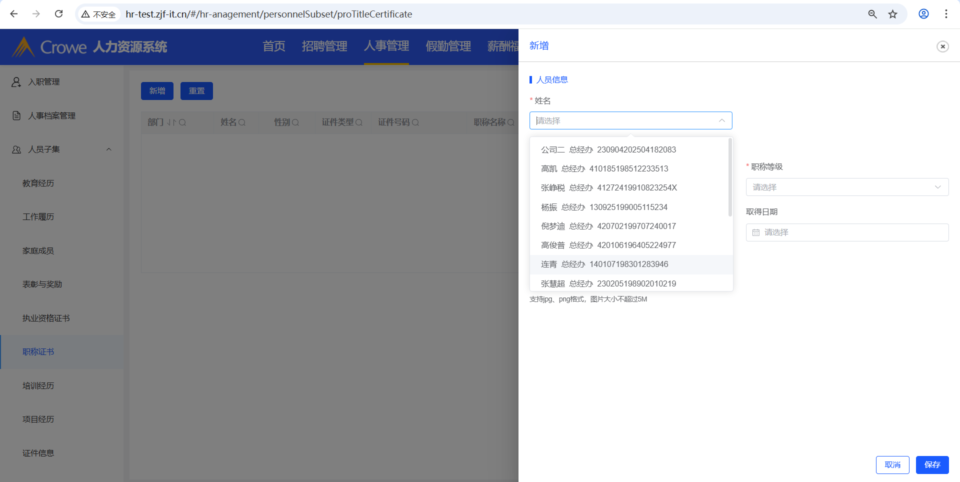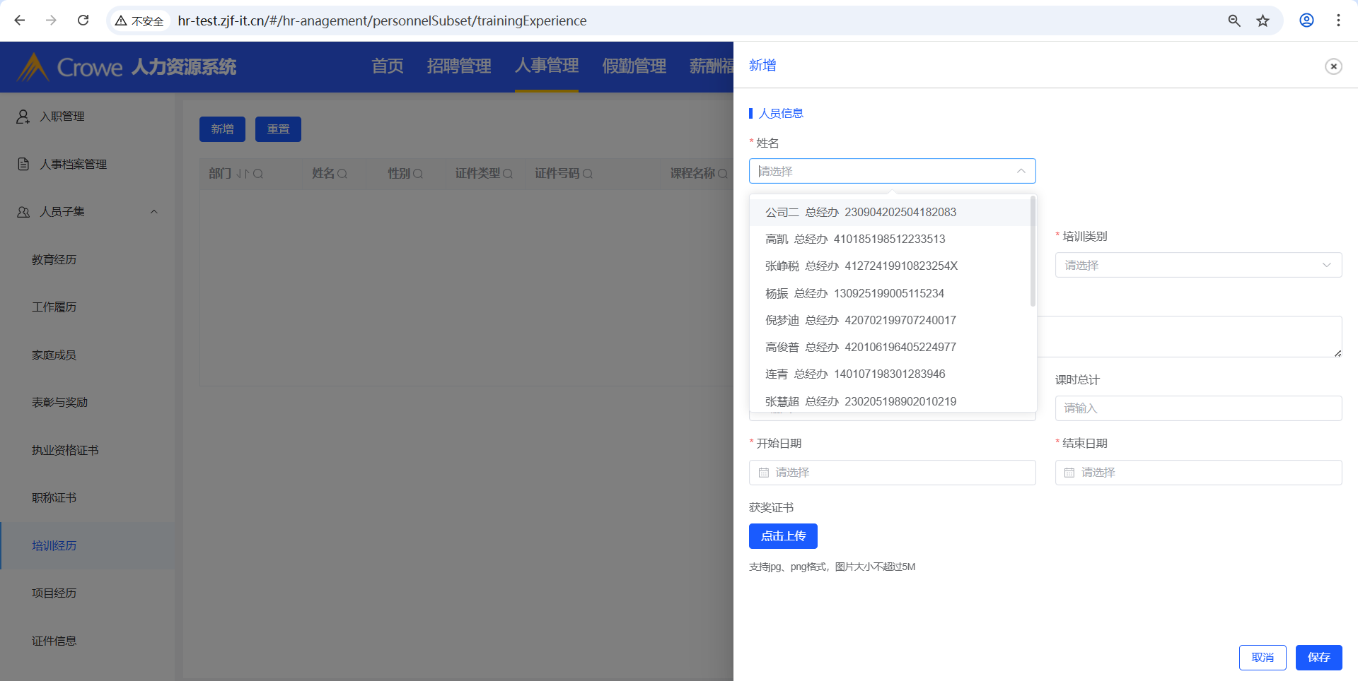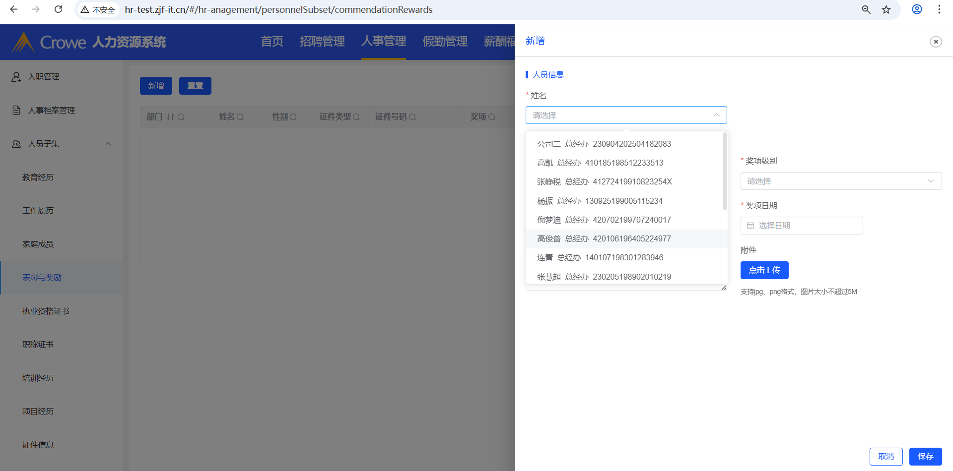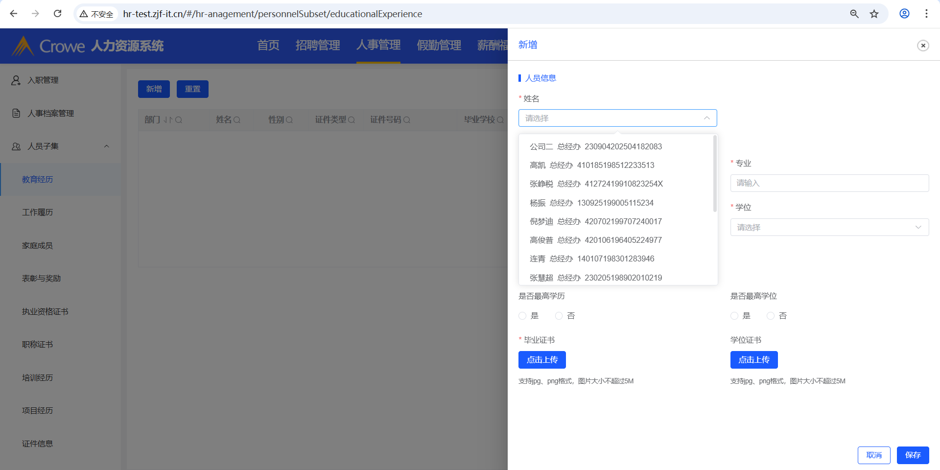 已关闭人力资源系统-人事管理-人员子集涉及到新增的操作,其新增的姓名下拉框,需做权限限制,当前下拉框显示所有人名(接口:/employee/info/getList)