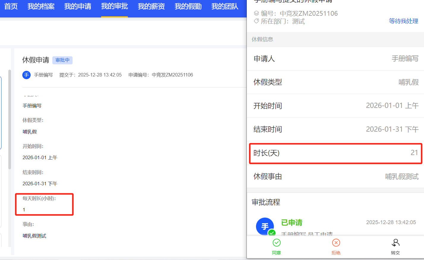 小程序-哺乳假在我的审批中显示时长错误