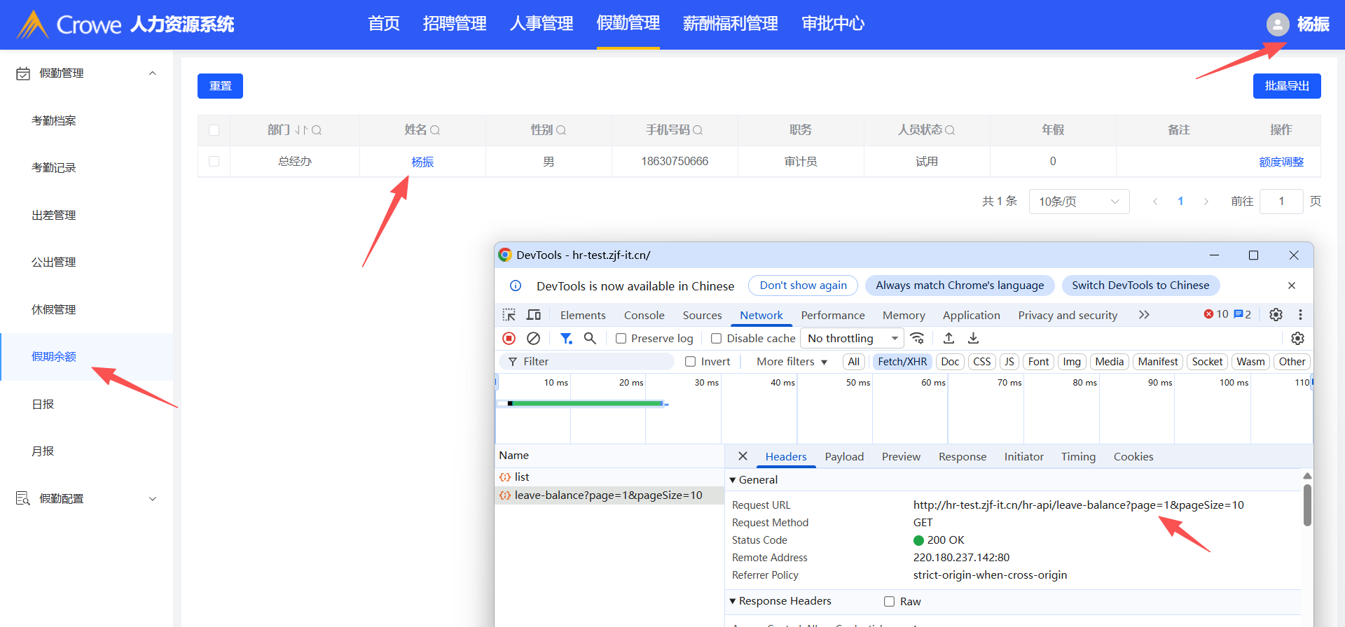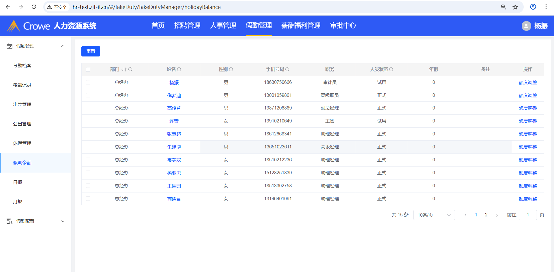已关闭人力资源系统-假勤管理-考勤余额,人员需做权限限制,当前只展示了个人的考勤余额,还需要展示该部门下的其他员工的考勤余额(接口:/leave-balance)