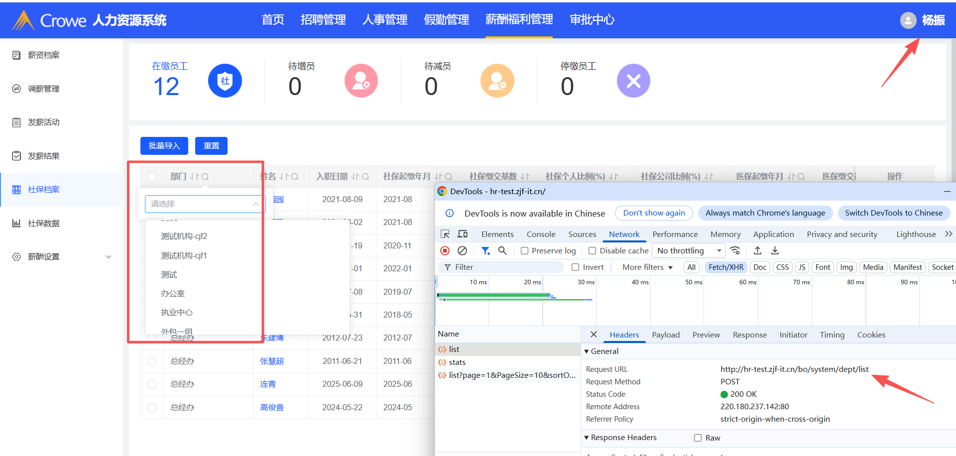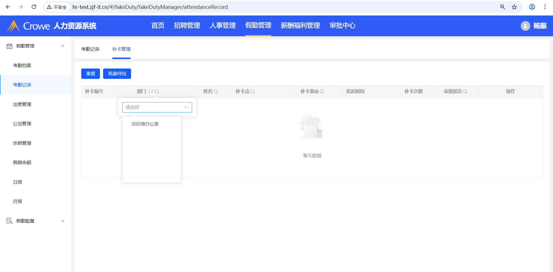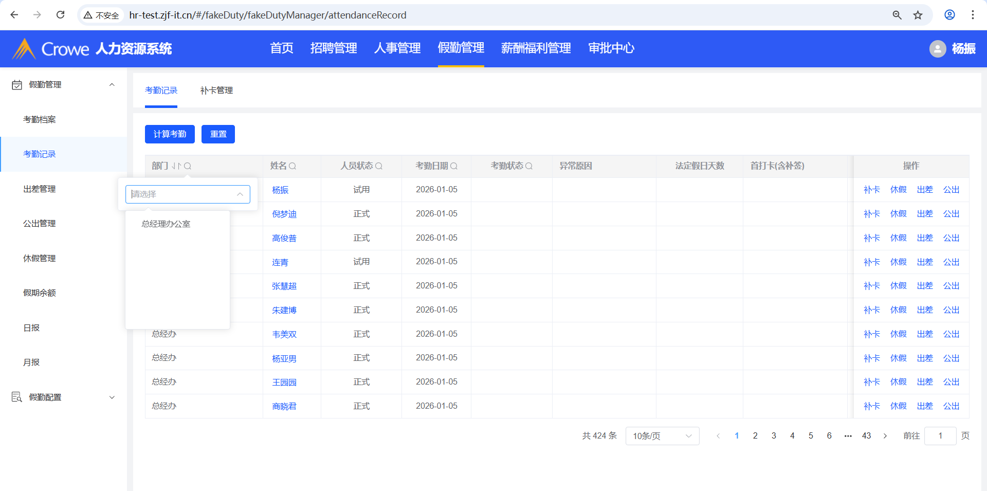 人力资源系统-假勤管理-考勤记录,人员需做权限限制,列表部门筛选,只需要展示该用户管理的部门,不需要展示全部部门(接口:/bo/system/dept/list)