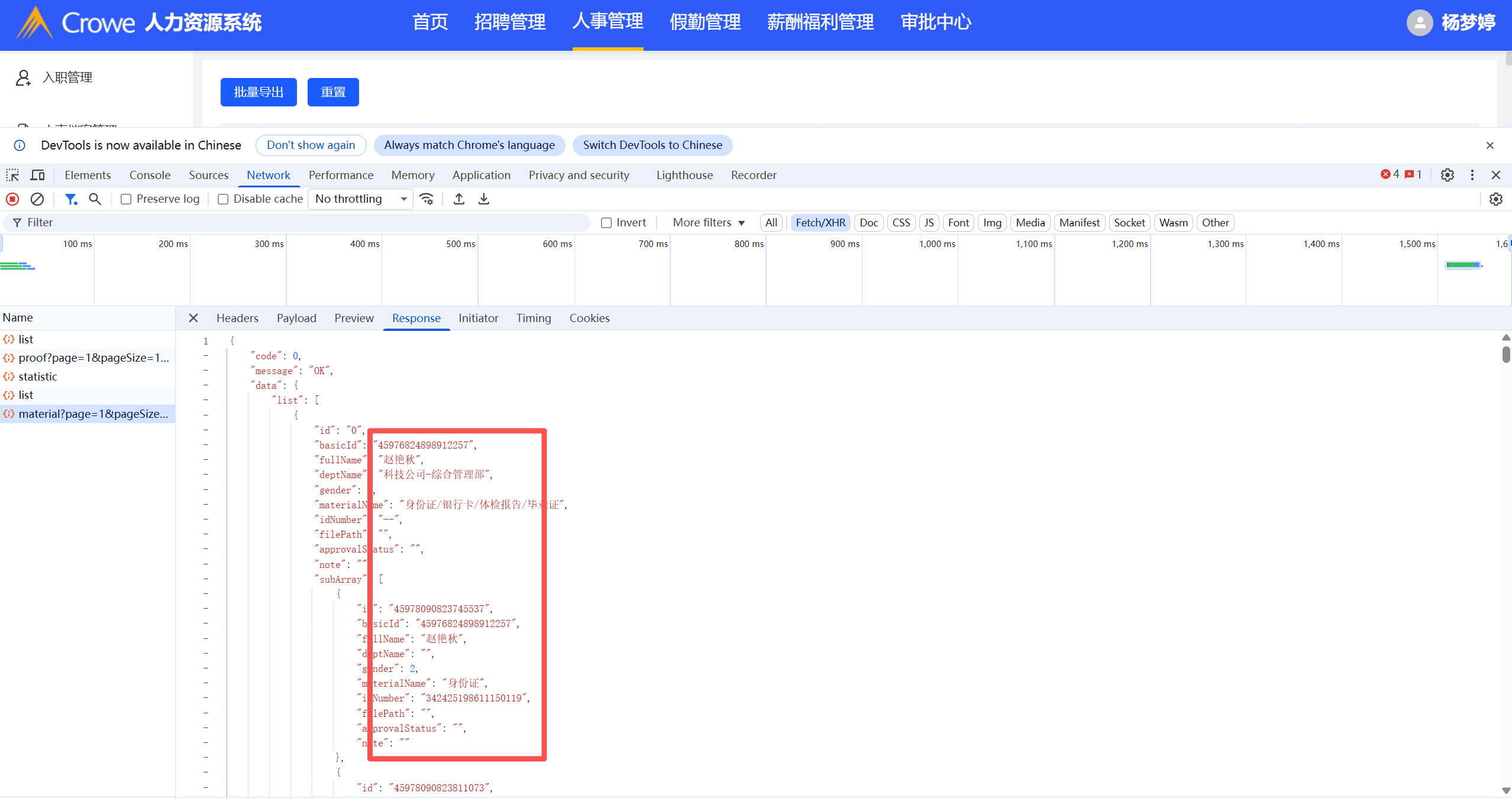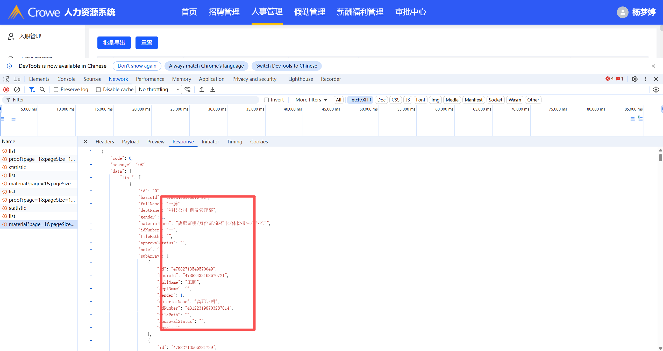 已关闭入职材料管理列表展示的数据不全,对所有入职采集链接填写的员工附件信息进行展示