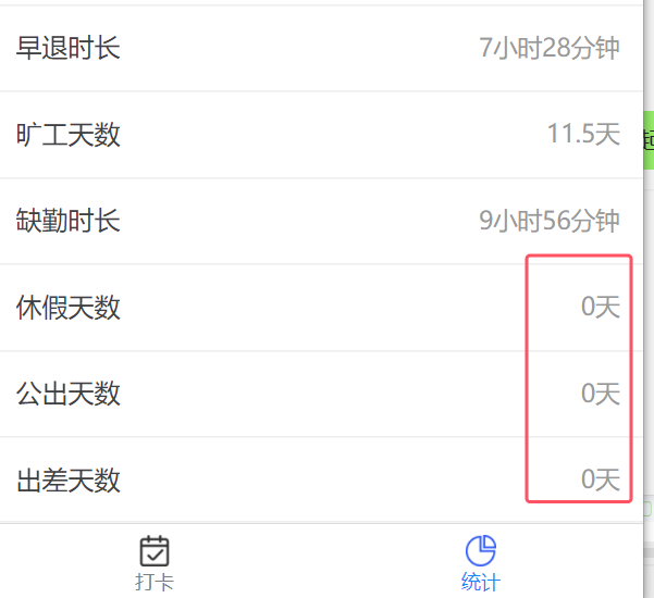 小程序-月度考勤汇总:休假天数、公出天数、出差天数统计的有问题