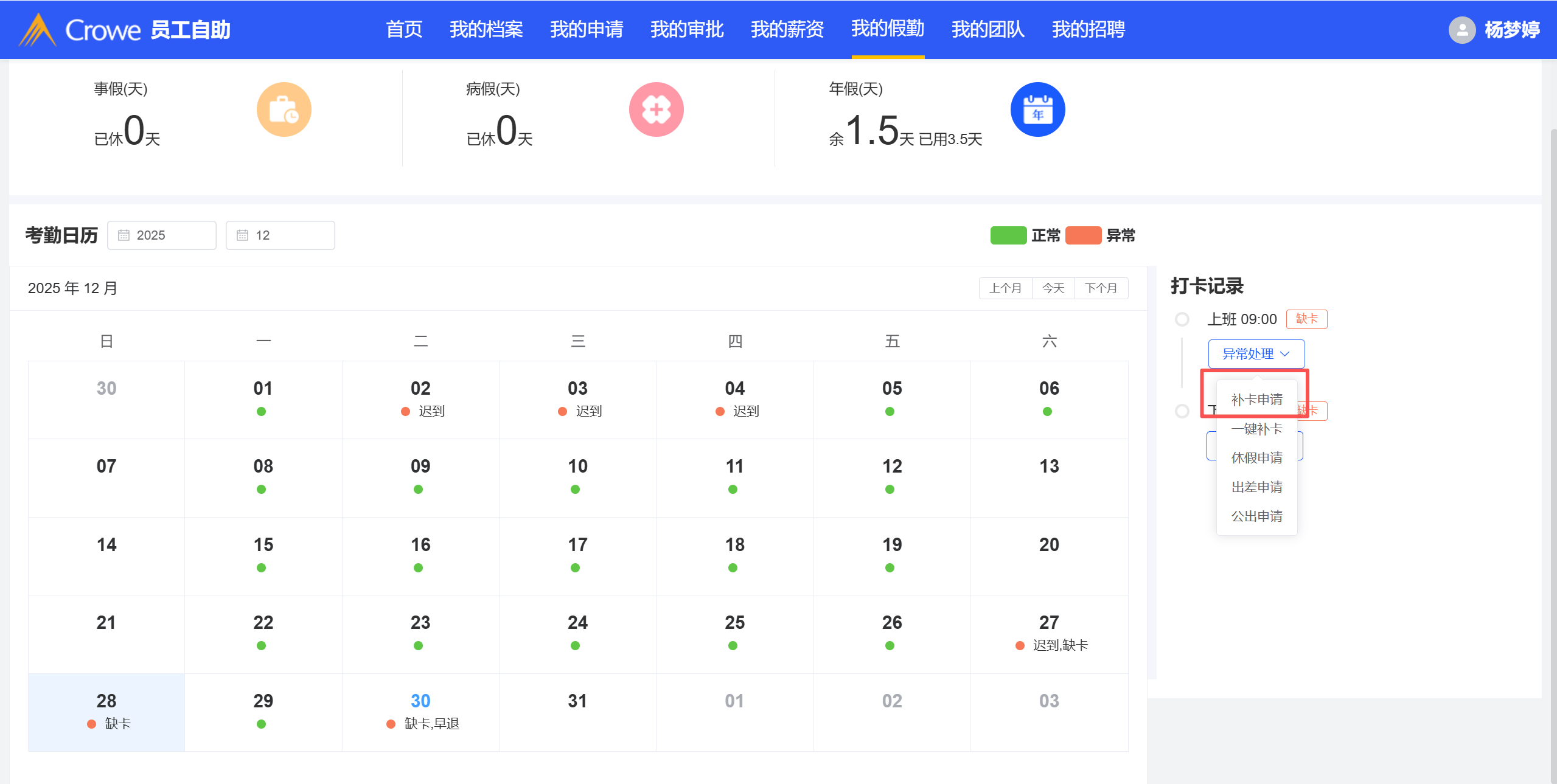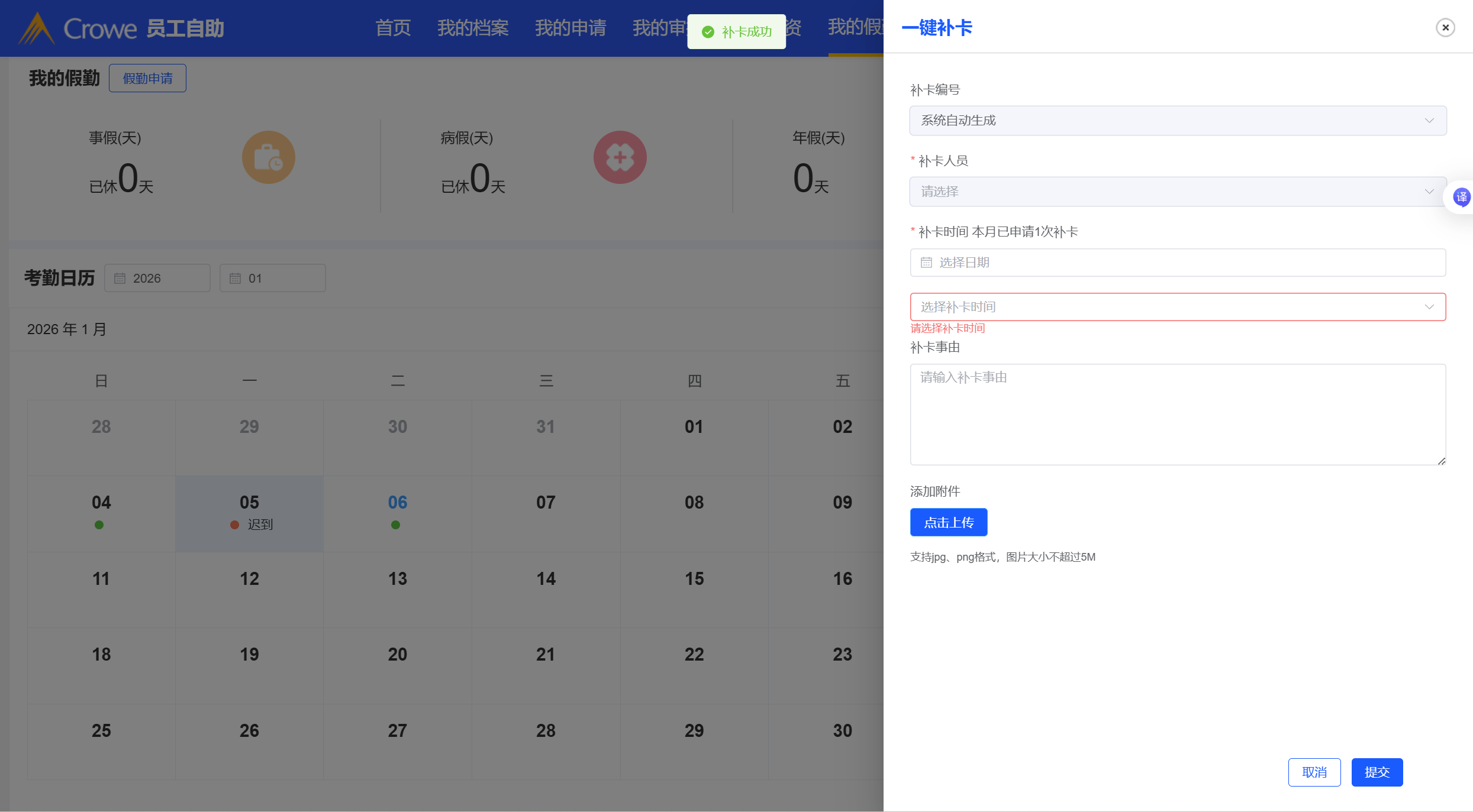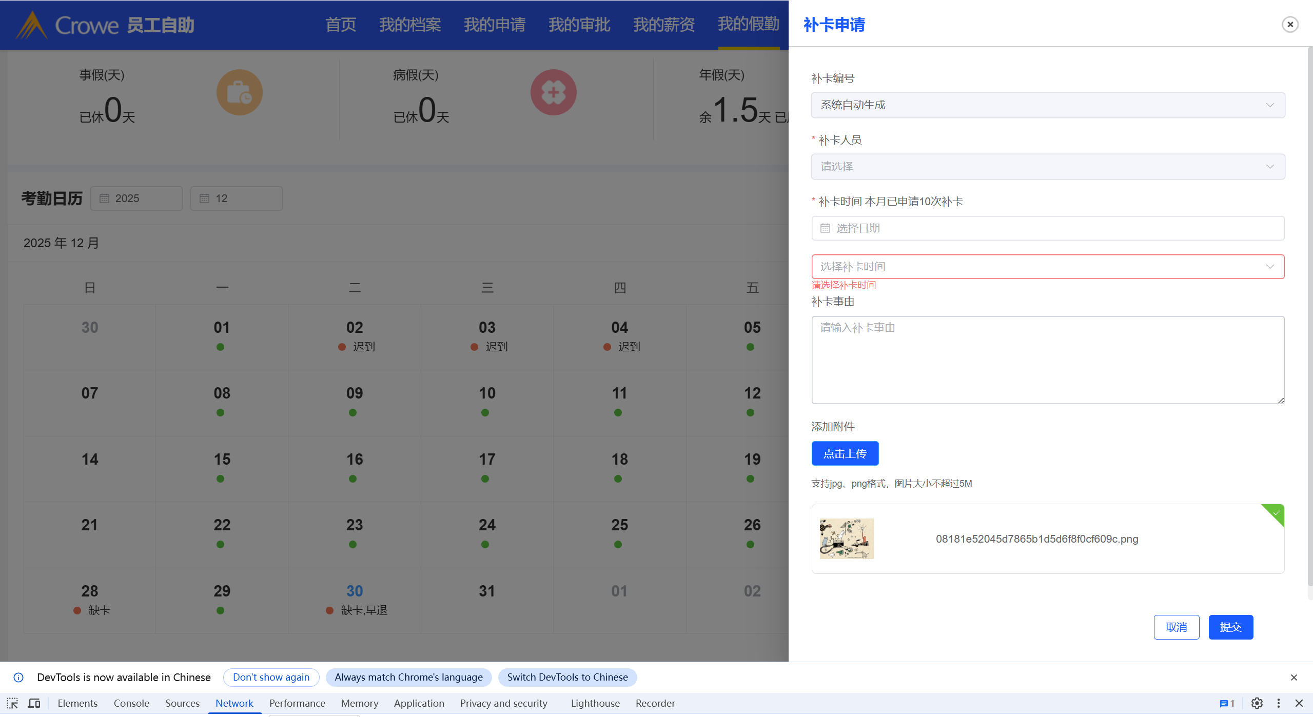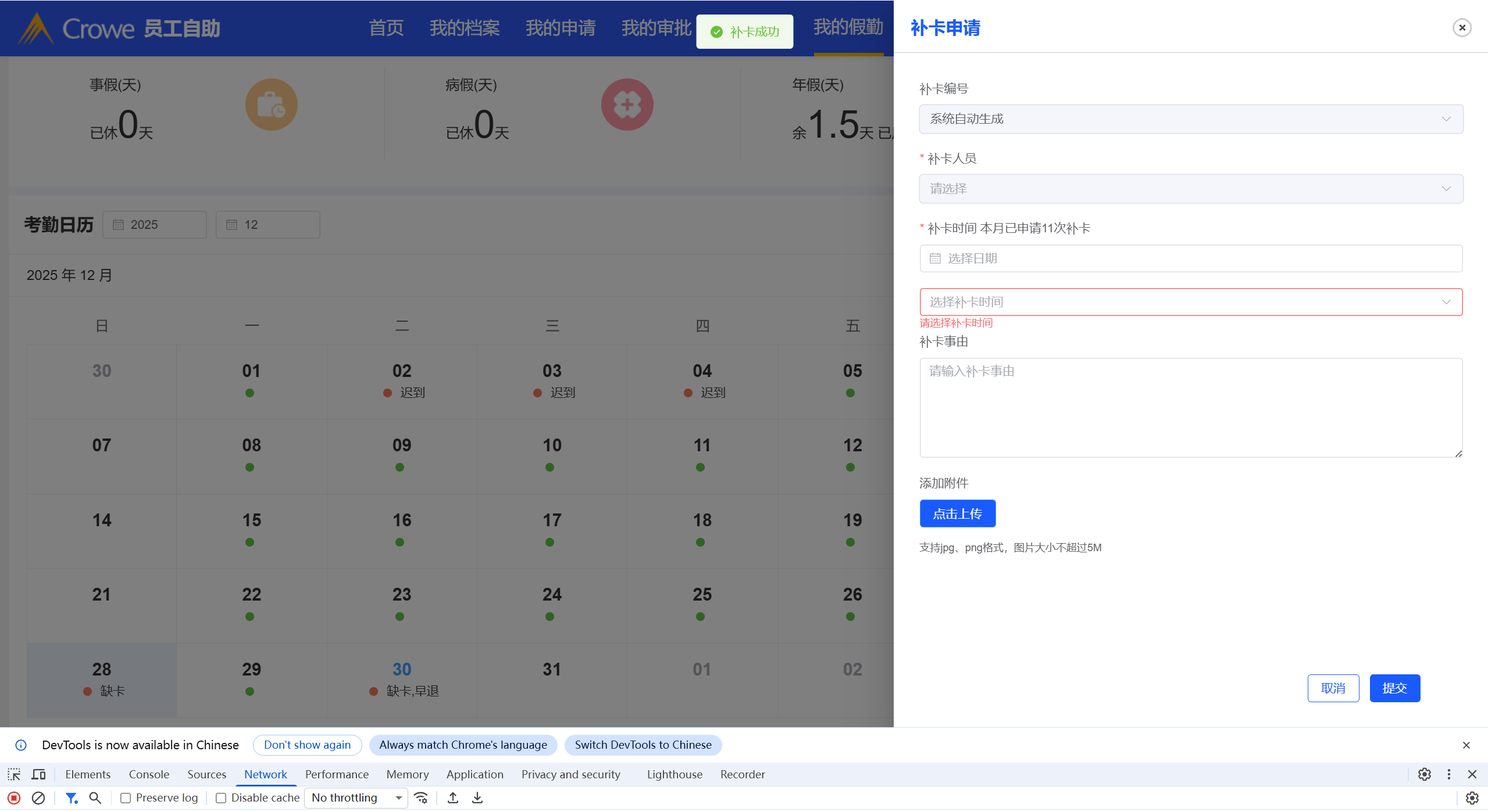 员工自助-补卡申请申请表单提交后,页面未初始化