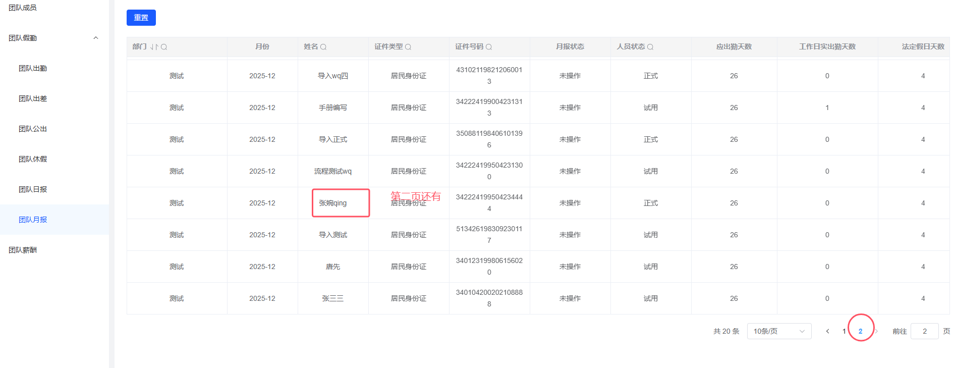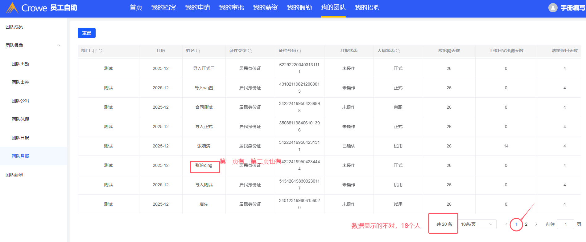 我的团队-团队月报:列表中的人员显示重复