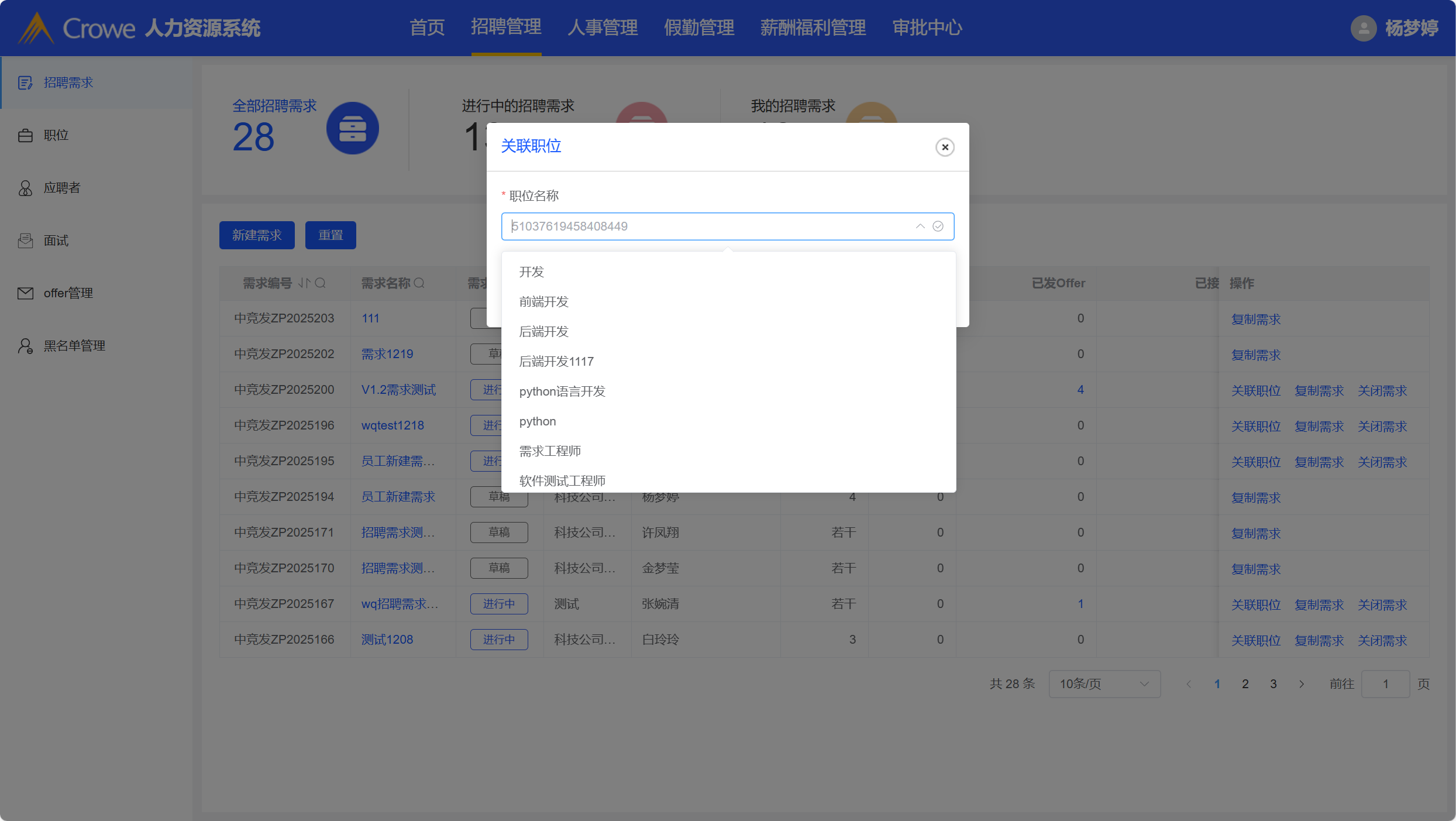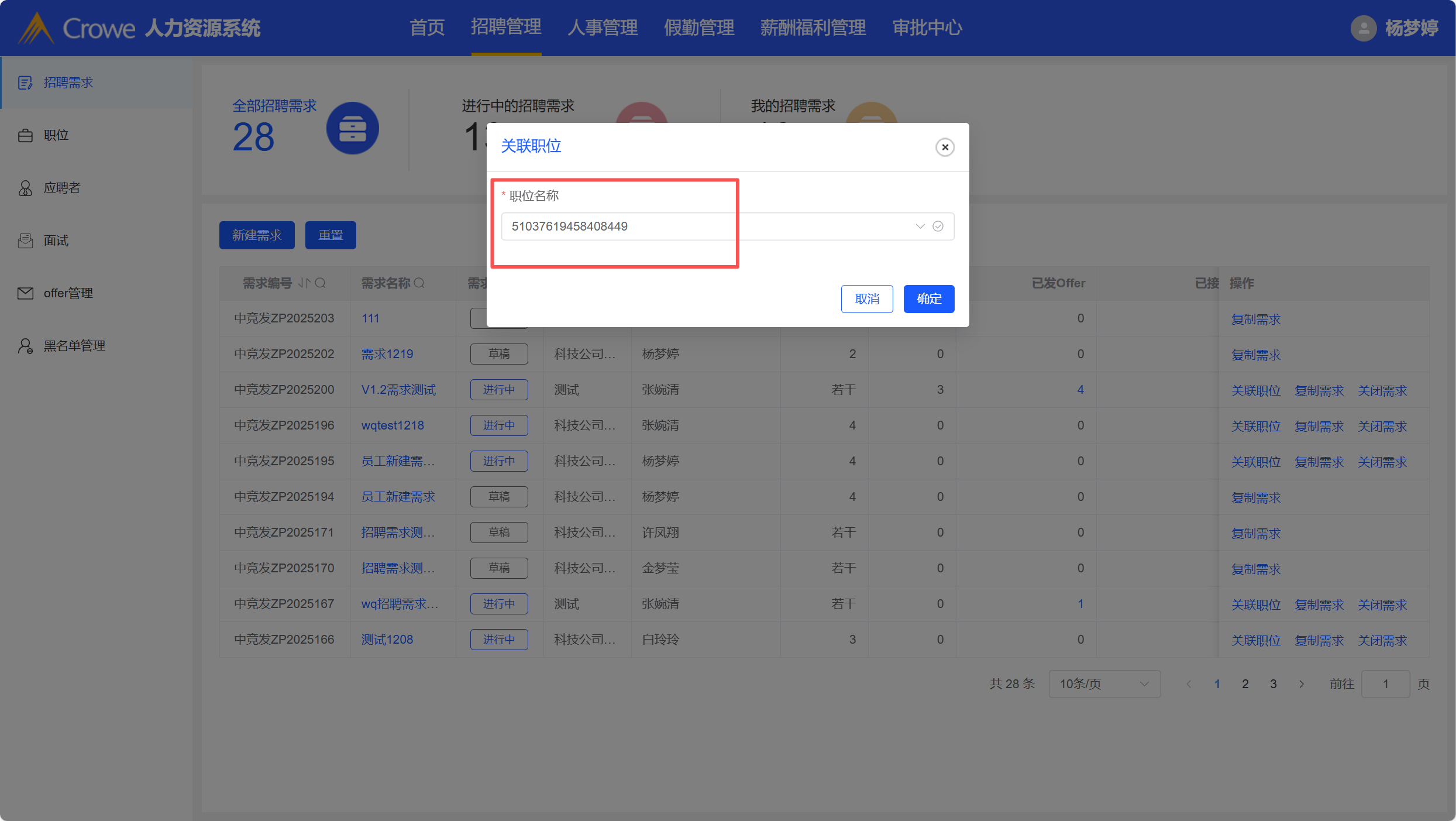 关联职位时,职位名称带出职位编号