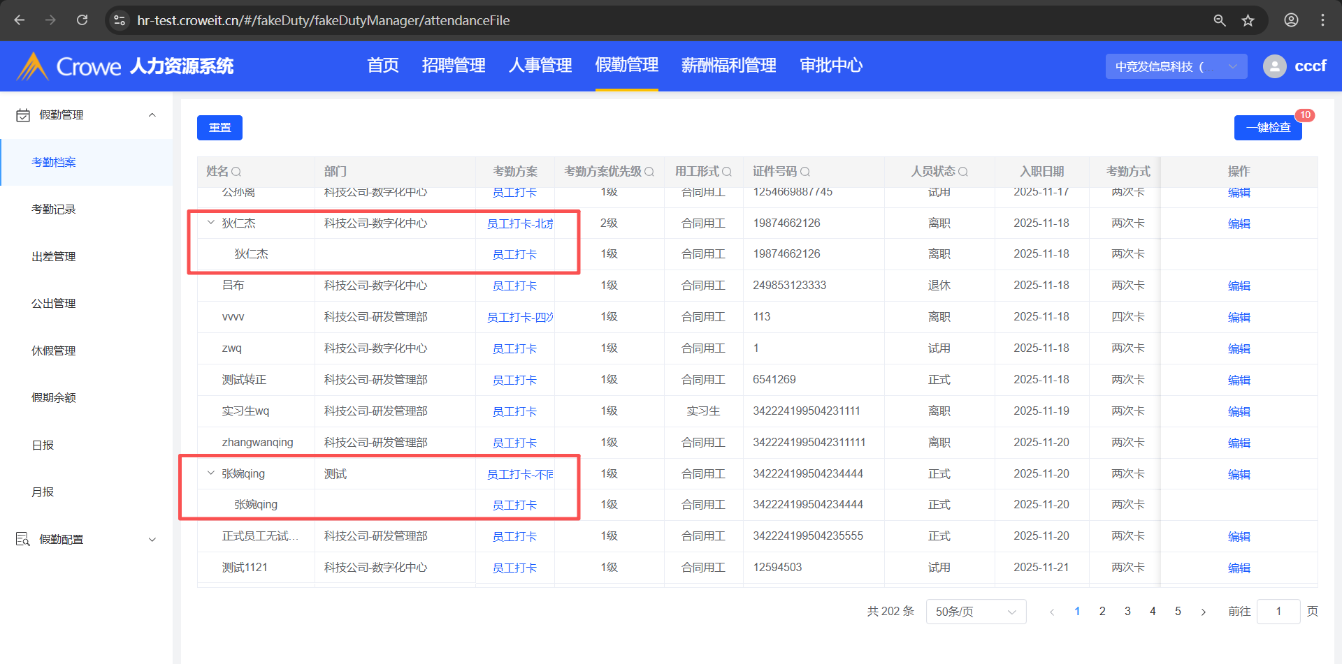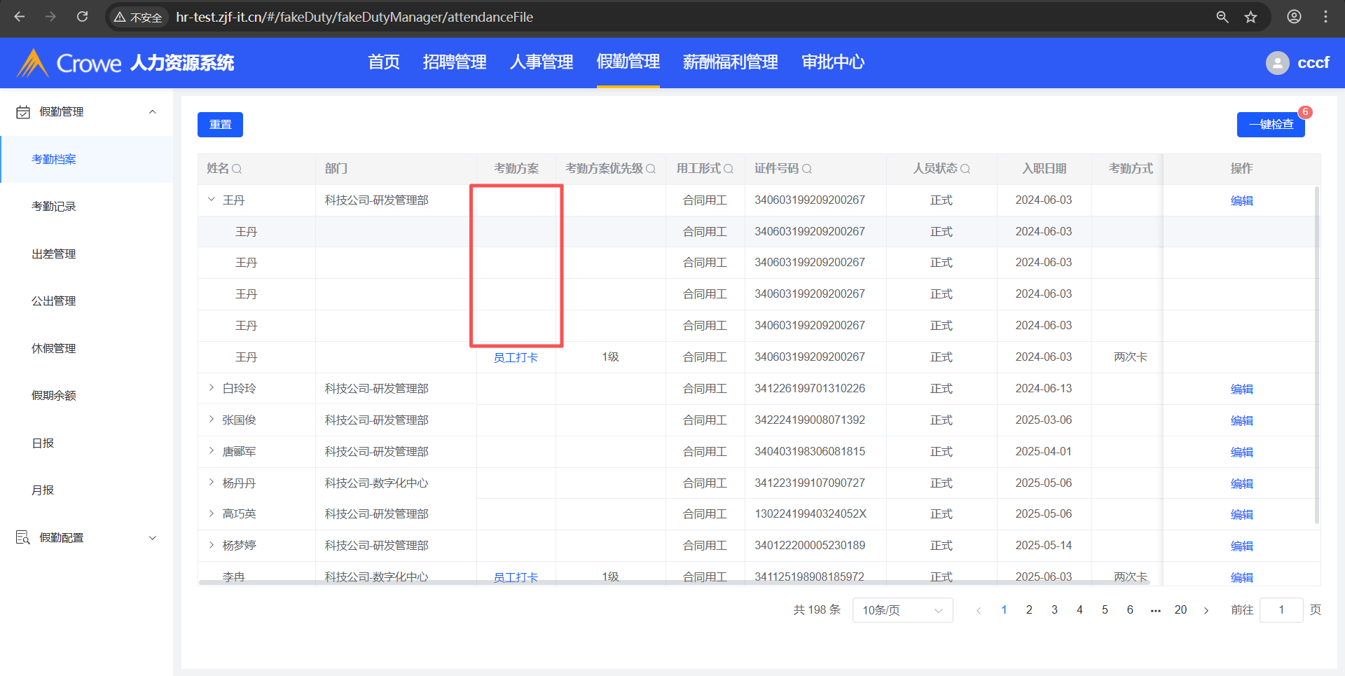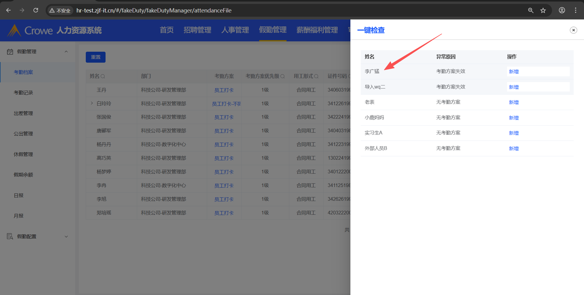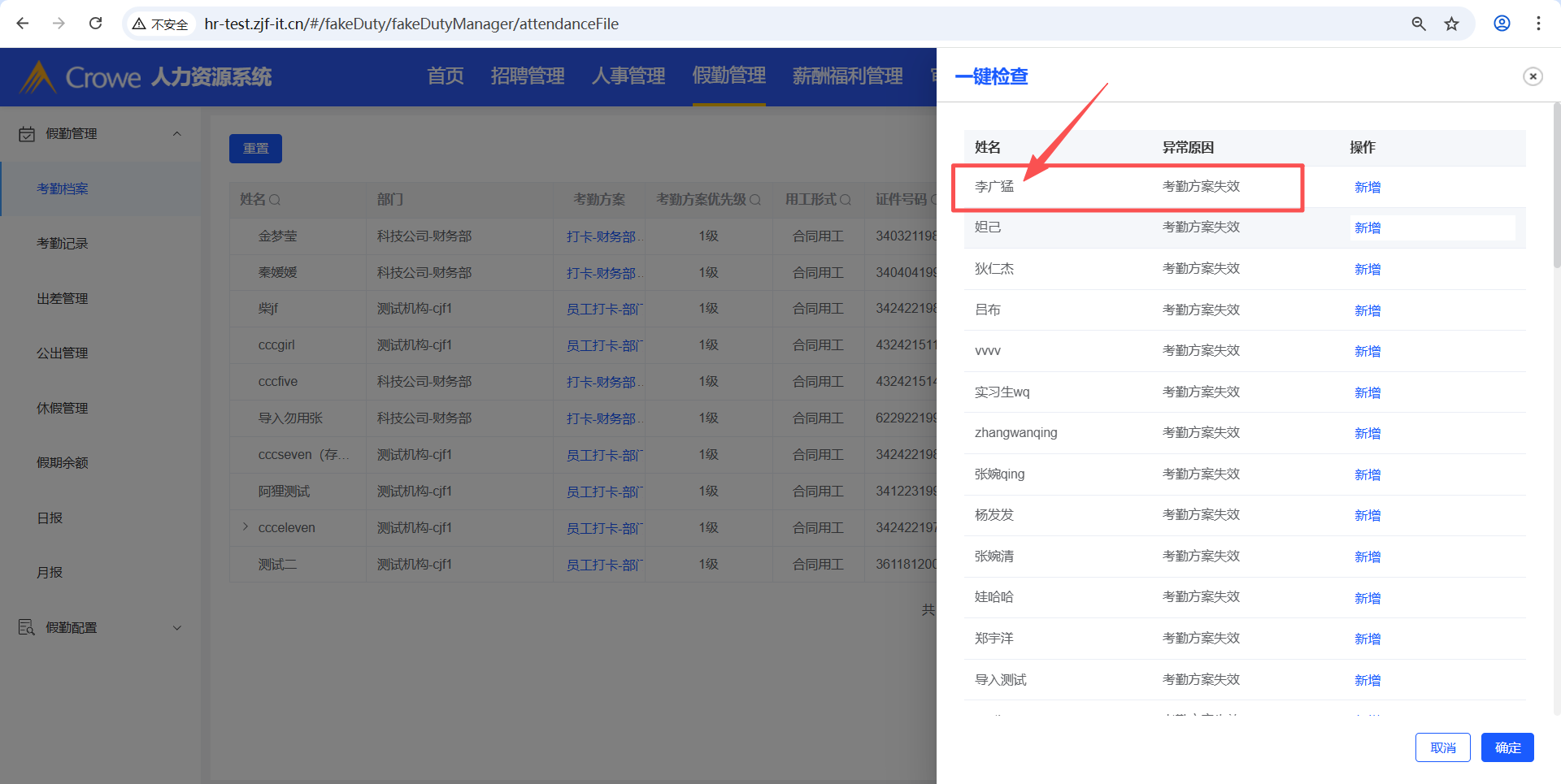 已关闭人力资源系统-假勤管理-考勤档案,在一键检查里考勤方案失效或者无考勤方案的人员,在考勤档案列表也要显示