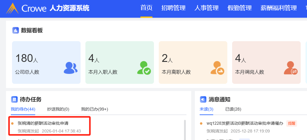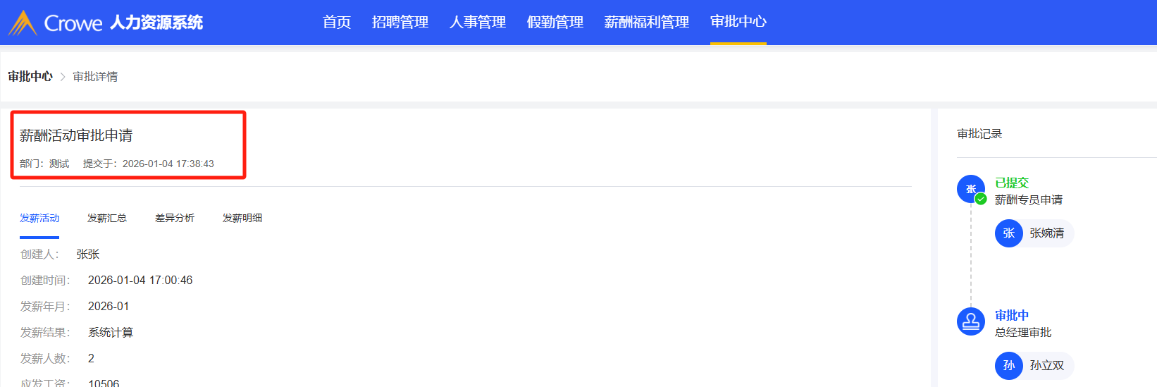 薪酬活动审批申请--在各个页面的名称显示均不一样,建议统一确定下