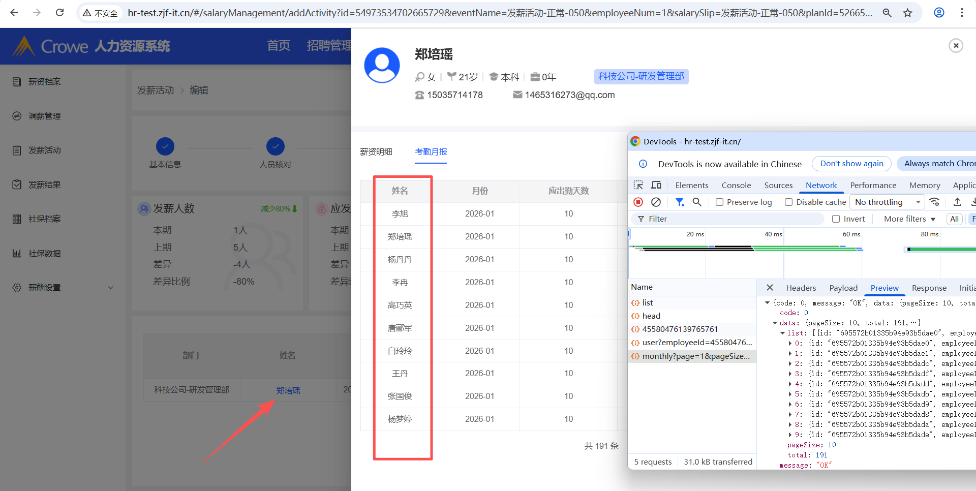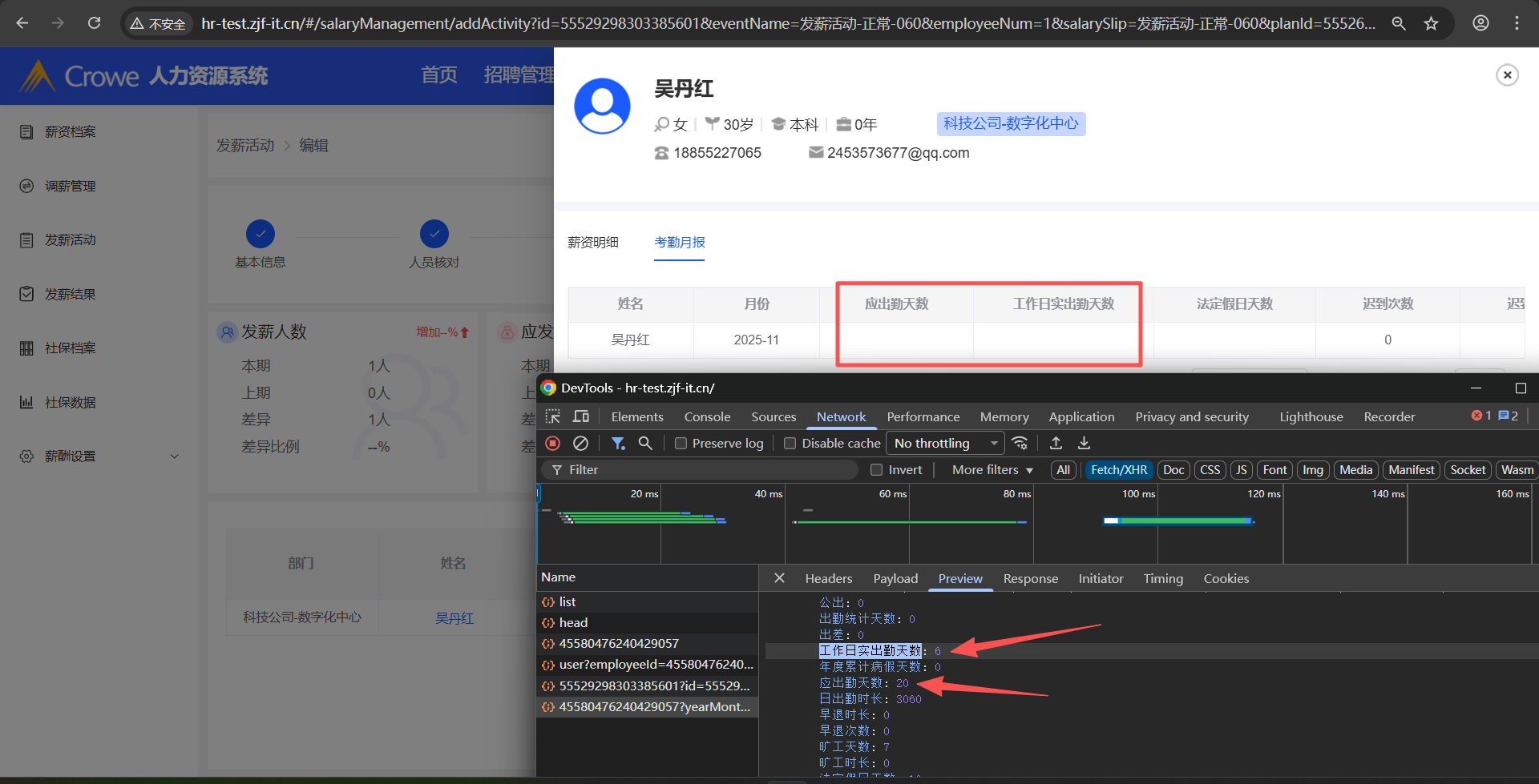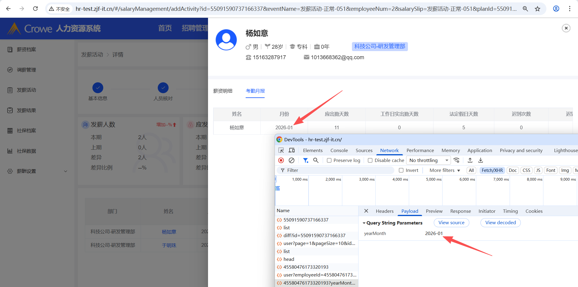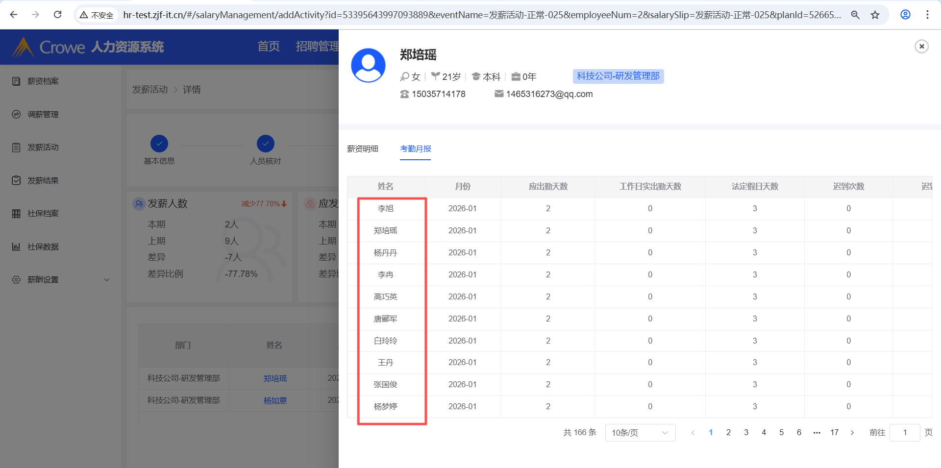 回归测试:不通过,差异分析1、差异分析2流程的考勤月报应该显示 发薪年月的那个月的月报信息