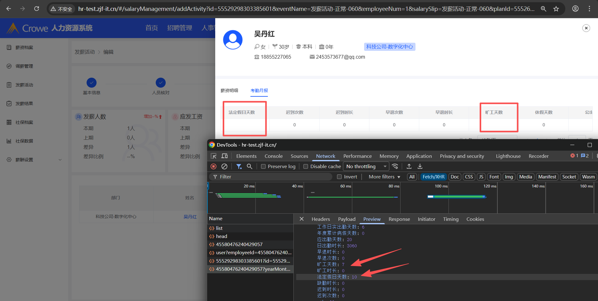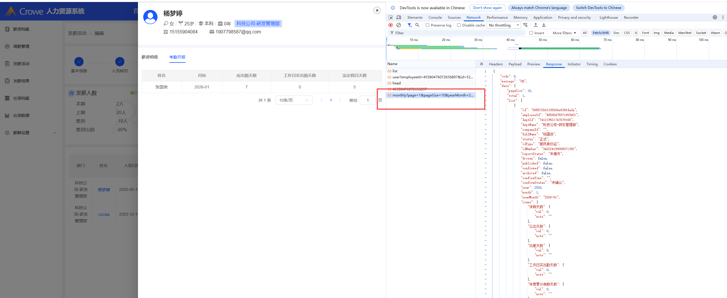 回归测试:不通过,考勤月报仍存在空白处未显示值