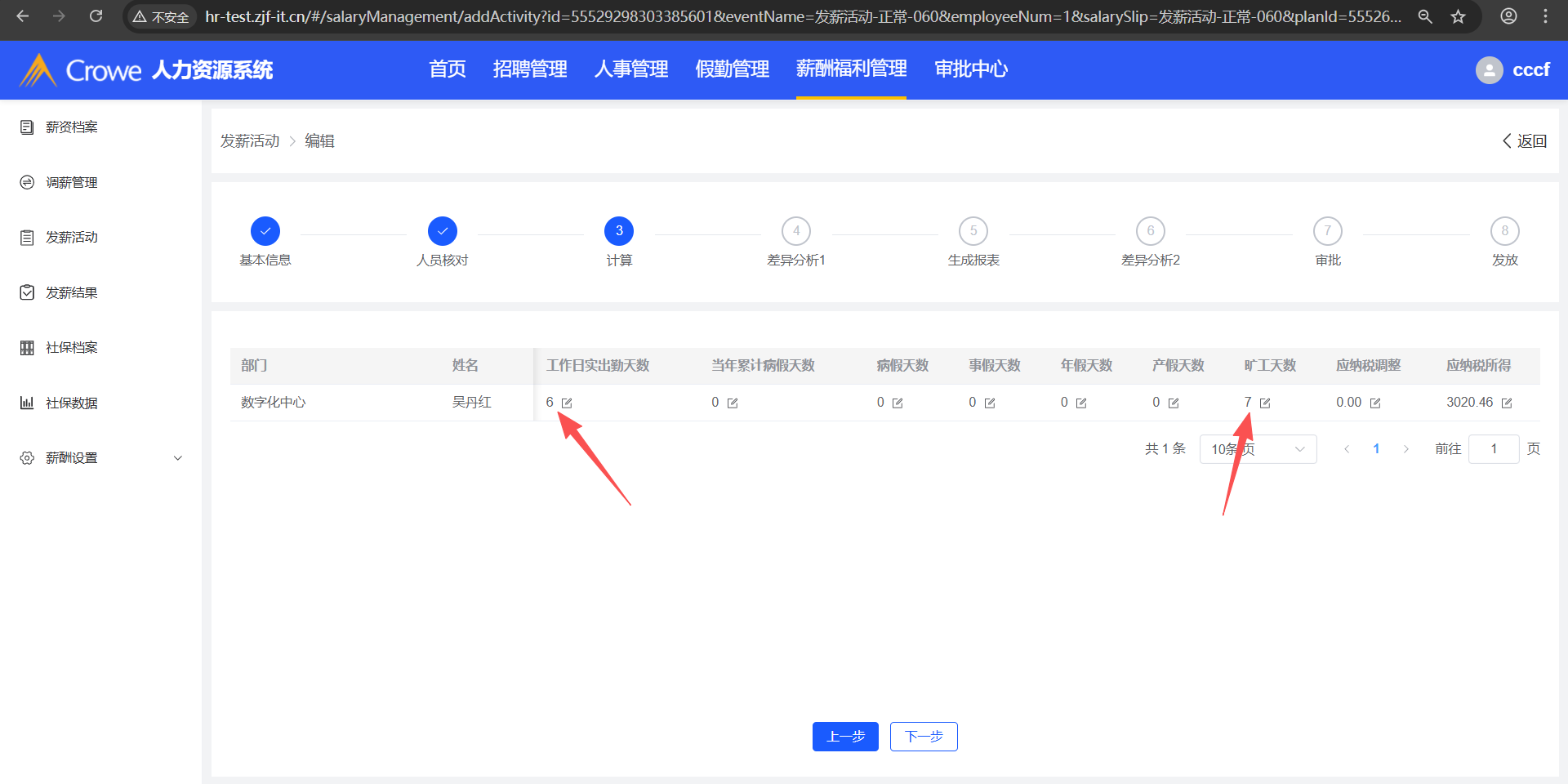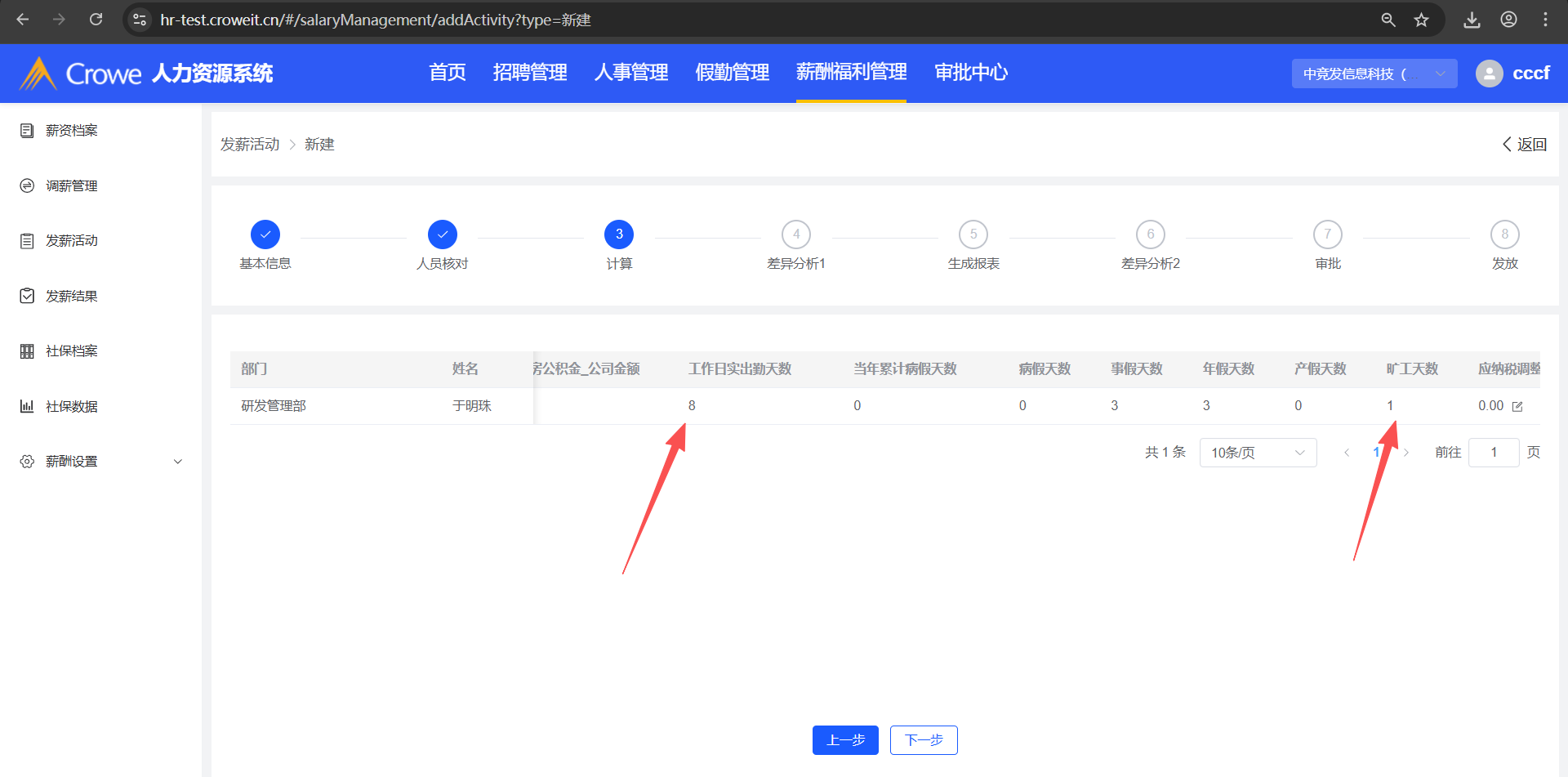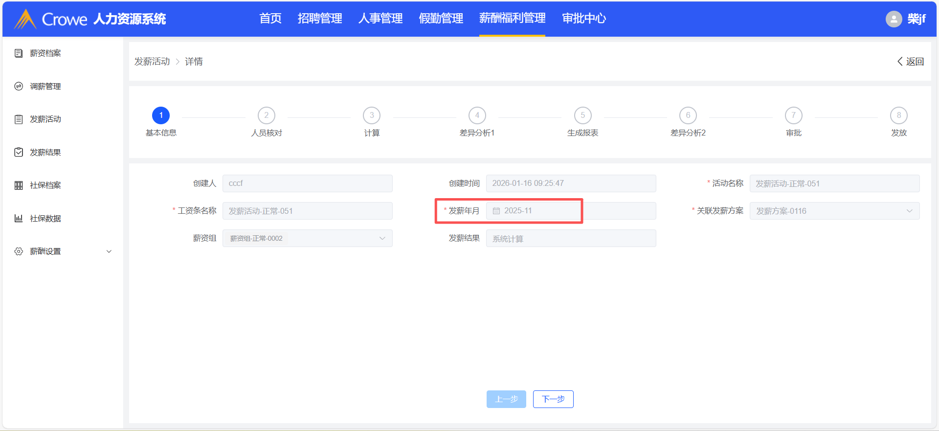 人力资源系统-薪酬福利管理-发薪活动,差异分析1、差异分析2流程的考勤月报显示不对