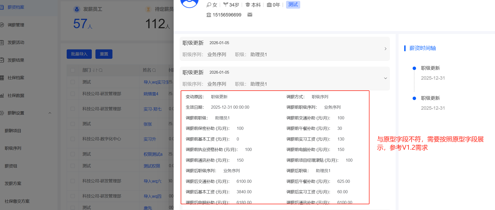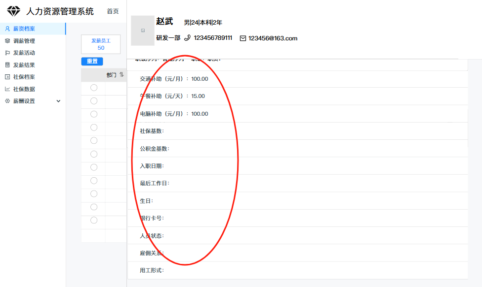 薪酬福利管理-薪资档案:点击姓名查看详情,展示字段需要按照原型