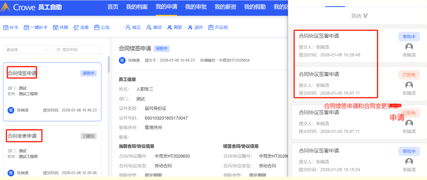 小程序:合同协议申请名称需按照变更和续签流程分别修改