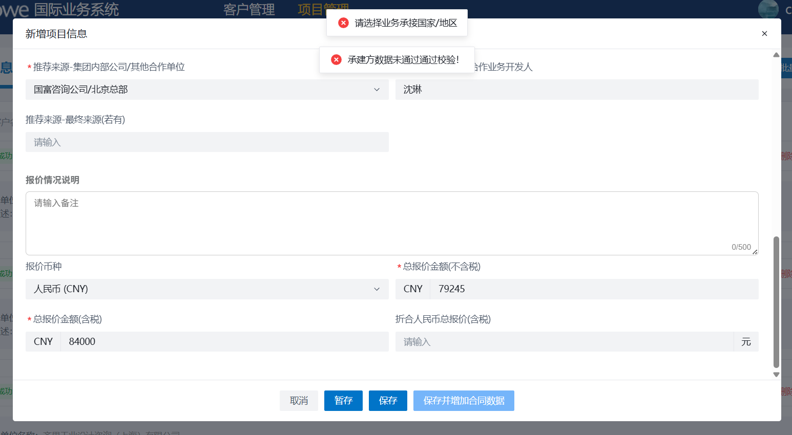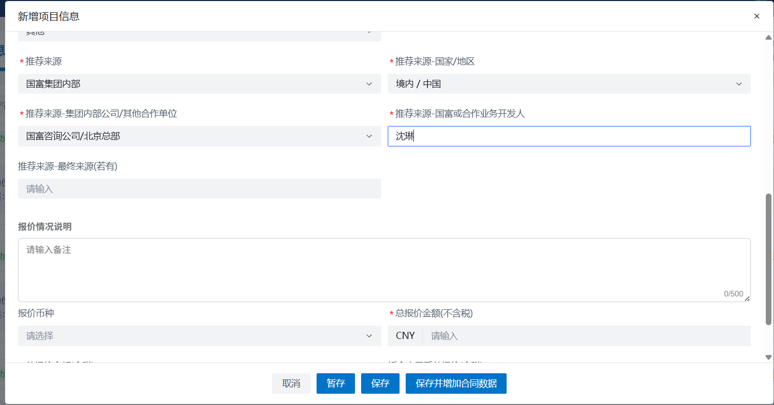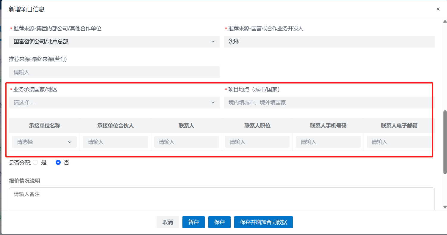 业务承接国家和项目地点字段、承接单位表格会不回显(偶现)