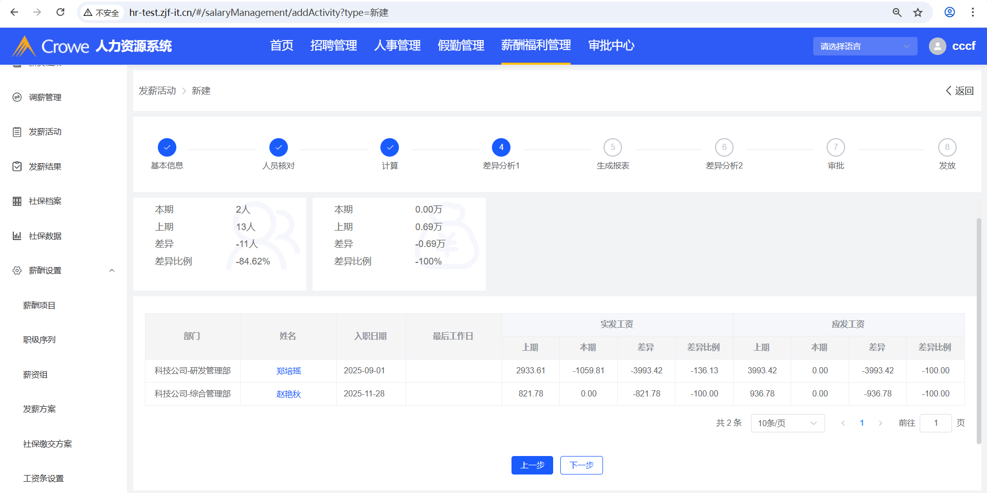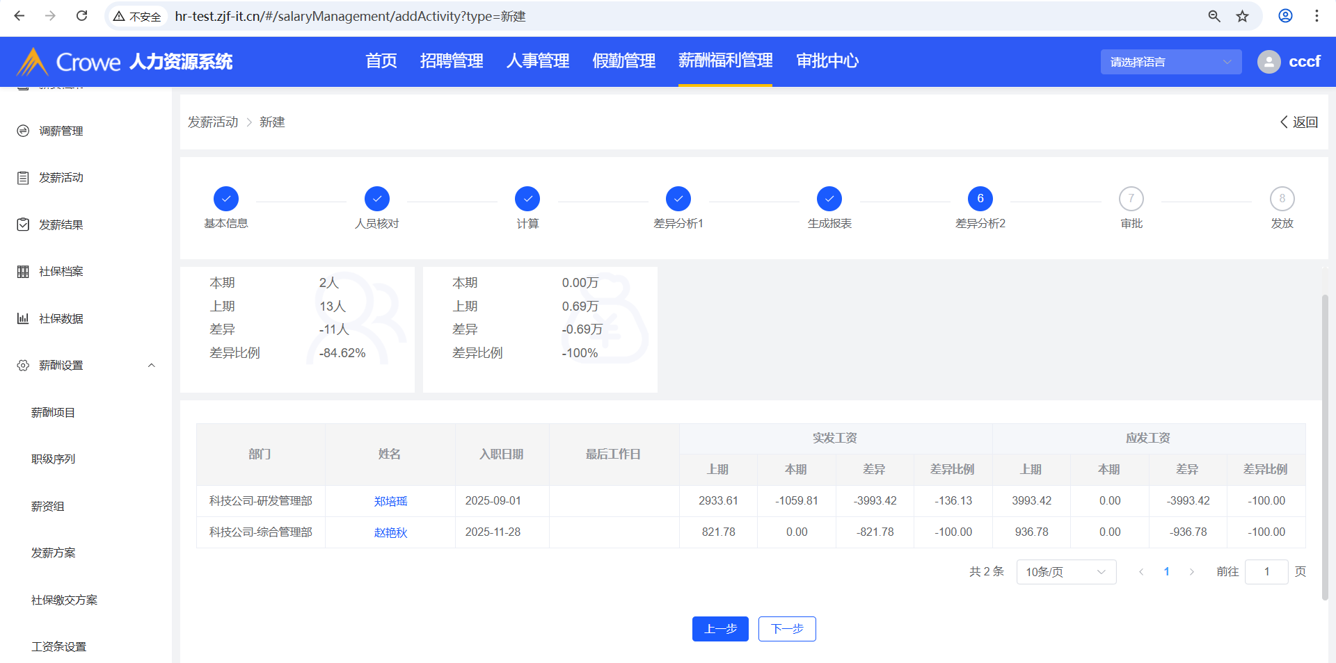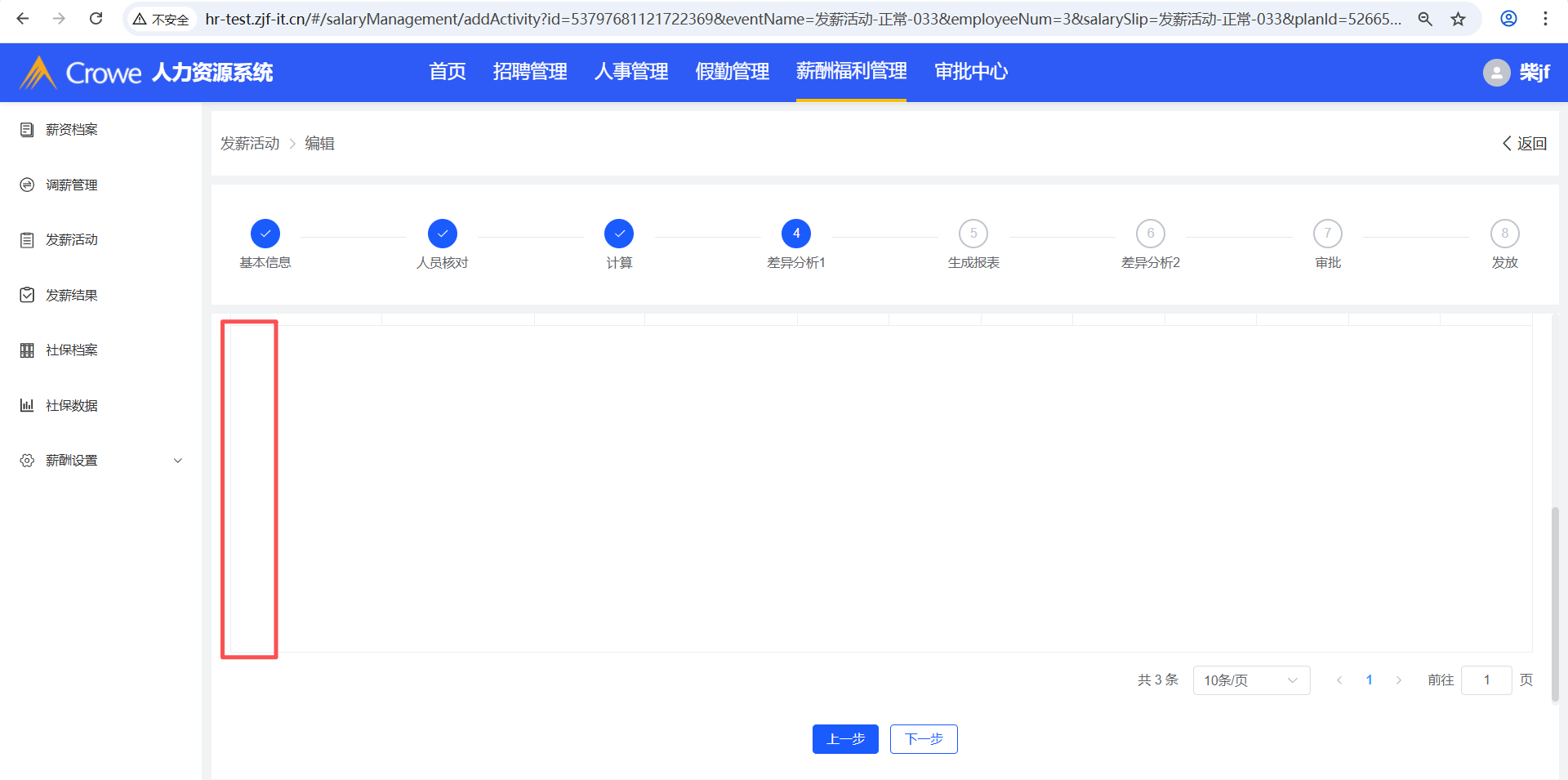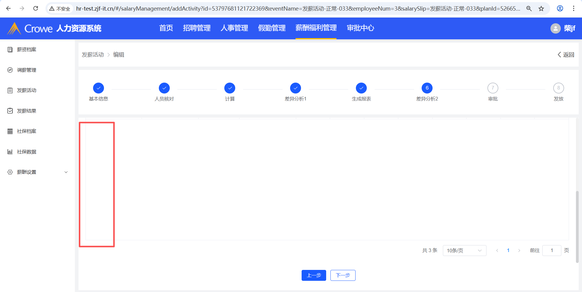 已关闭人力资源系统-薪酬福利管理-发薪活动,差异分析1、差异分析2底部的main部分调整下高度,有点高,空白处有点多