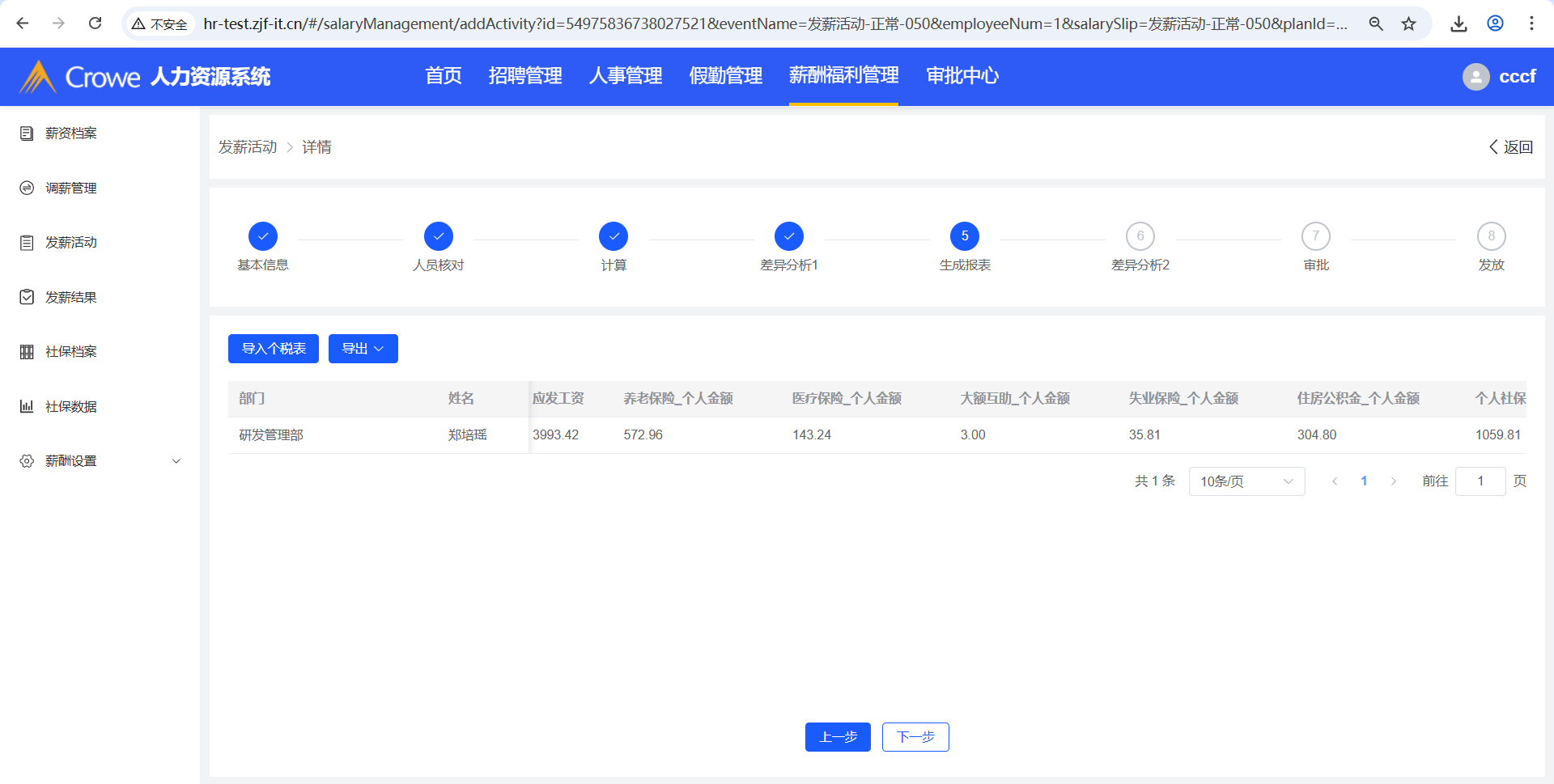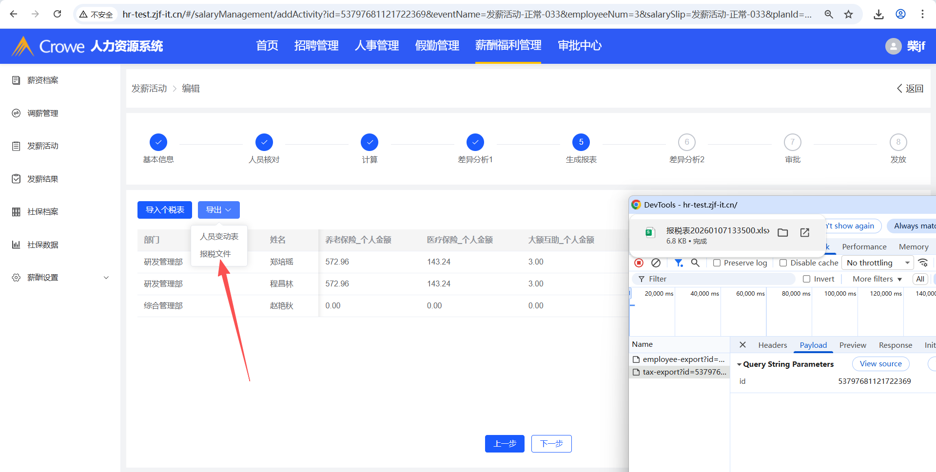 人力资源系统-薪酬福利管理-发薪活动,生成报表流程,导出报税文件,表里数据不应为0