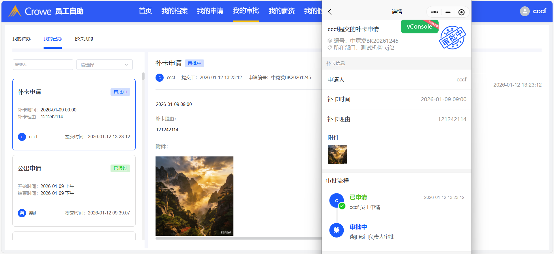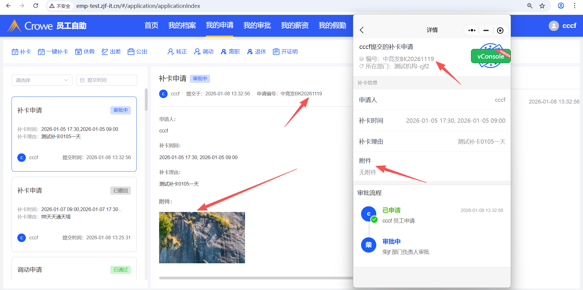 小程序-消息-我的已办,补卡申请的附件未显示
