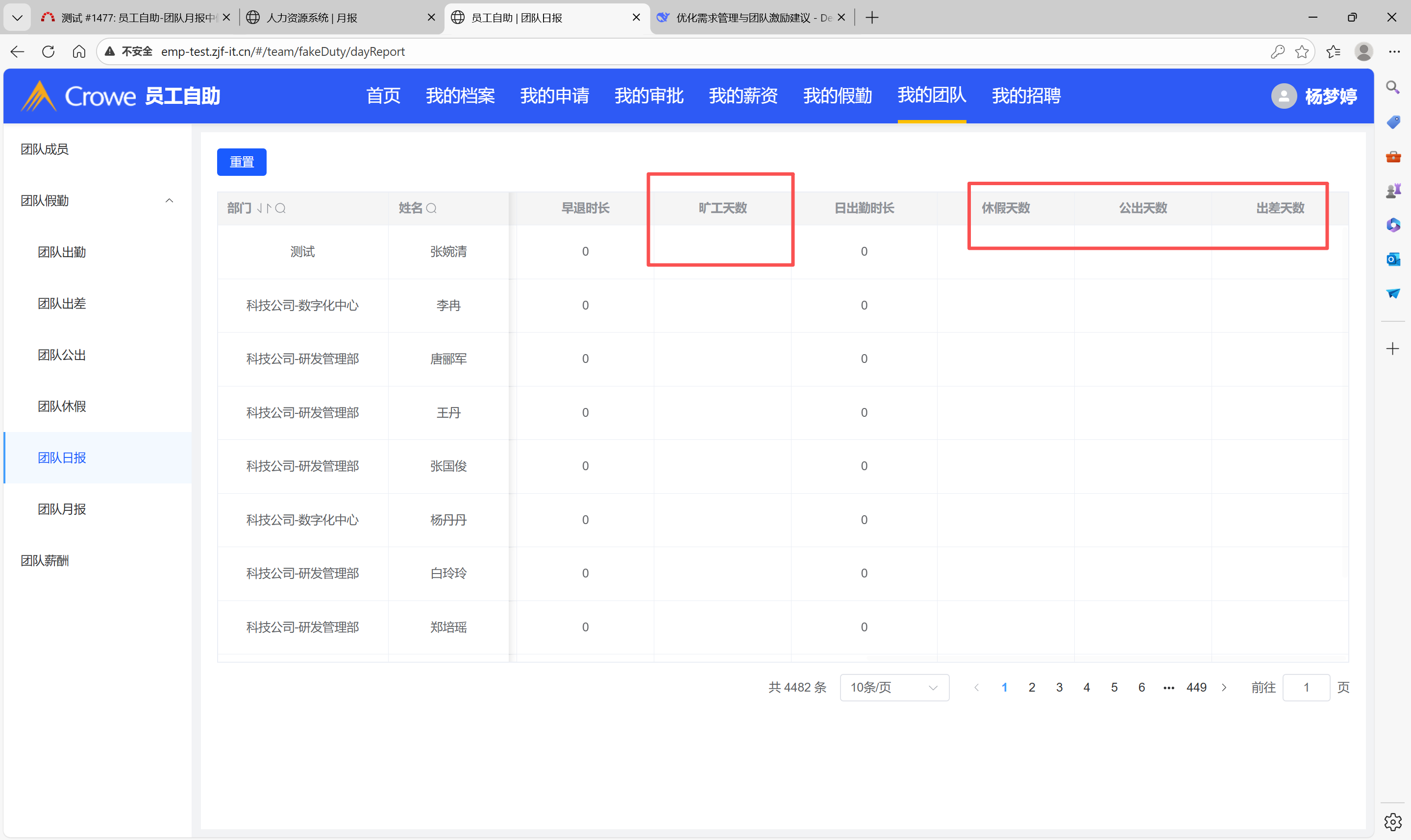 员工自助-(测试环境)团队日报中,字段数据不能为空,无数据的展示为0
