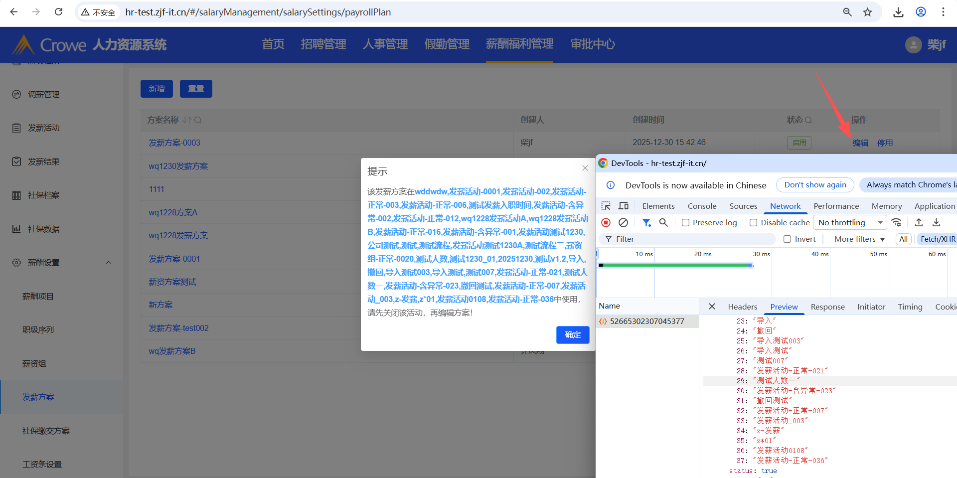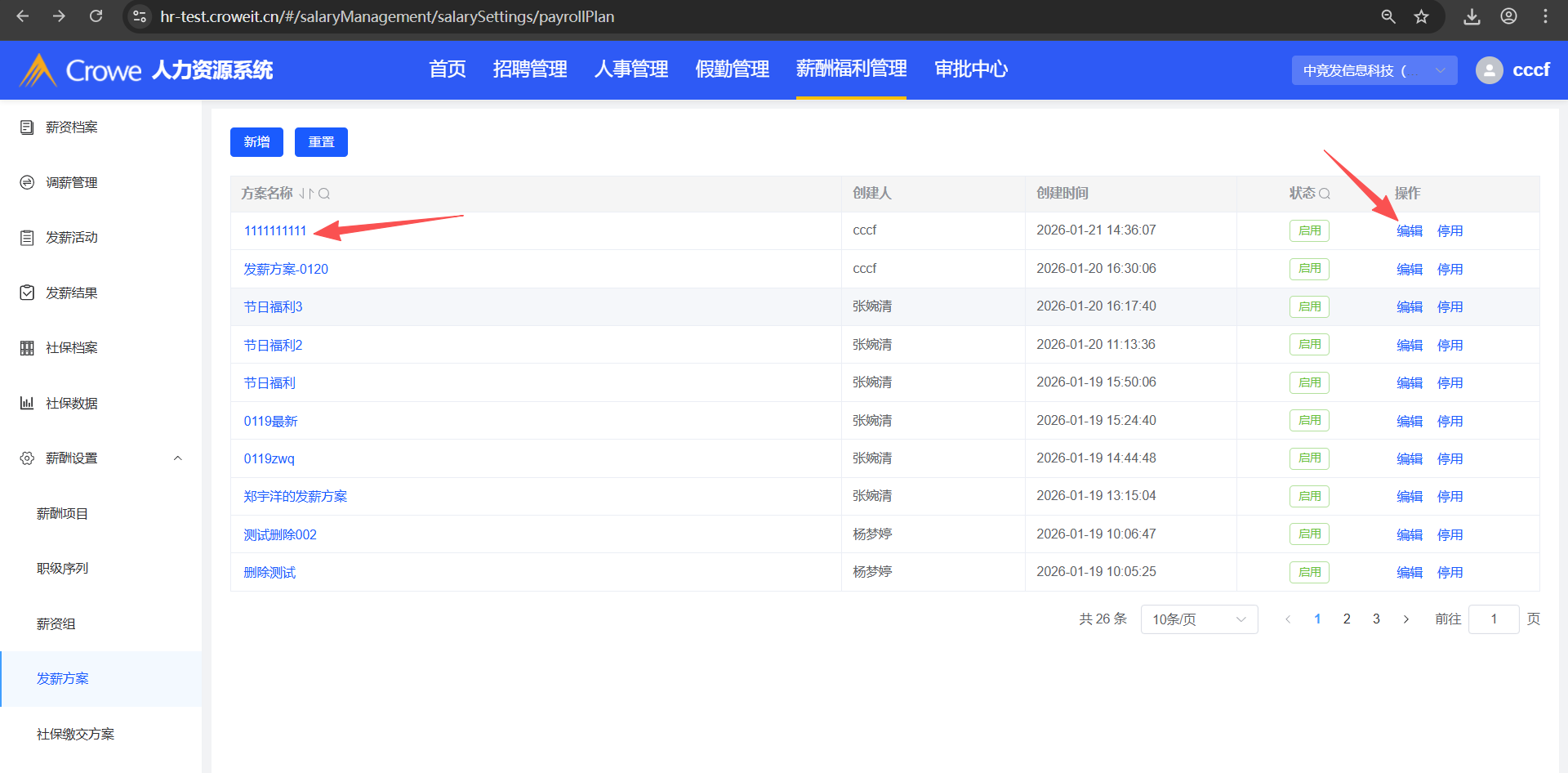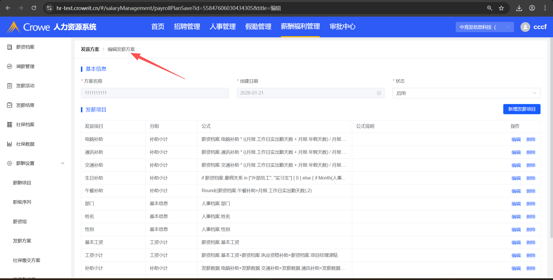 已关闭人力资源系统-薪酬福利管理,新增一个发薪方案,无法编辑