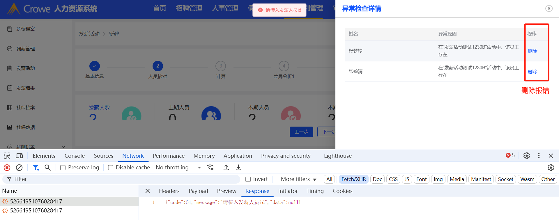 薪酬福利管理-发薪活动:异常检查详情中无法删除