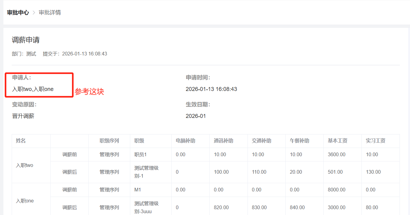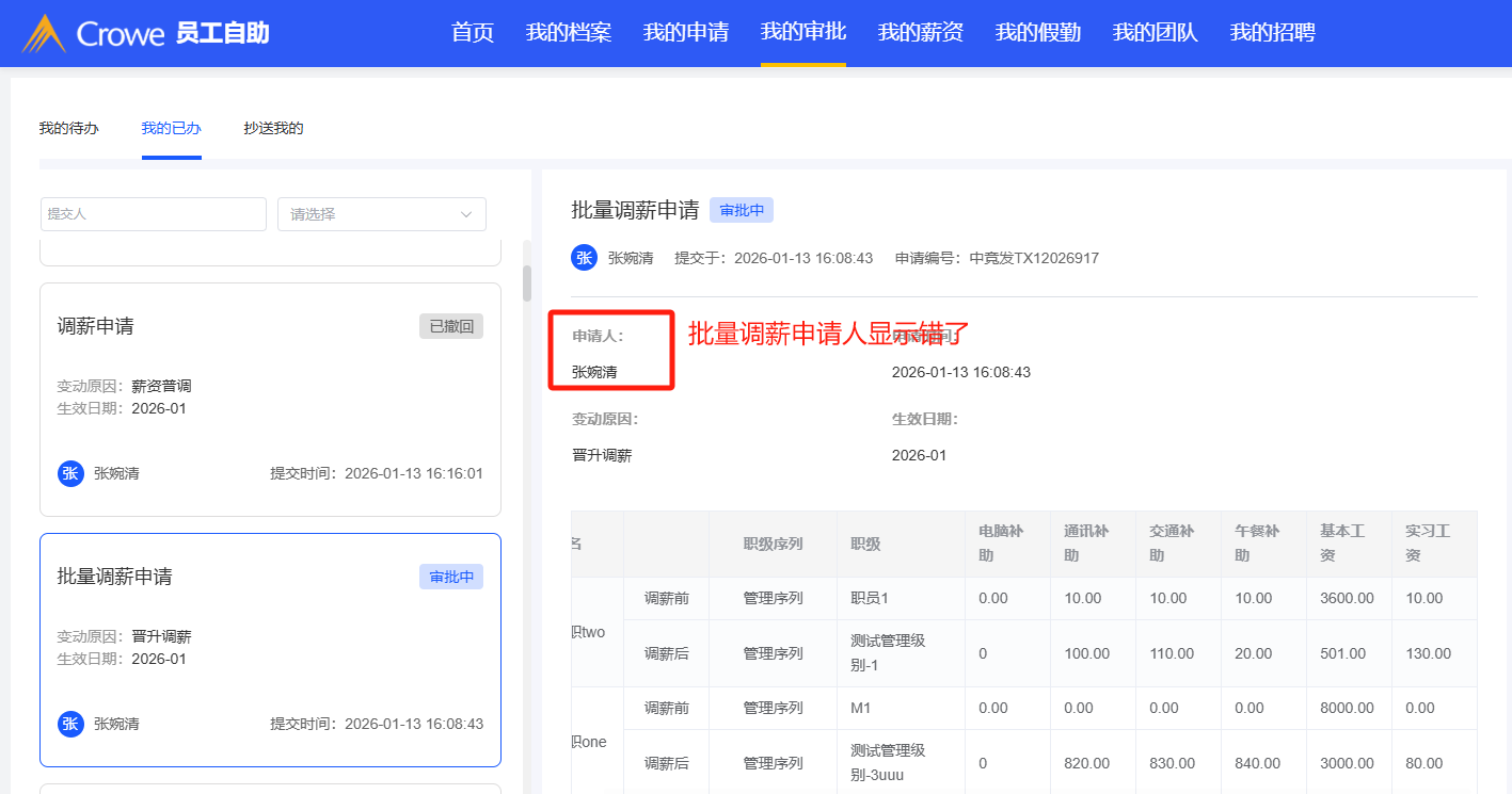 员工自助-批量调薪:申请人显示错了