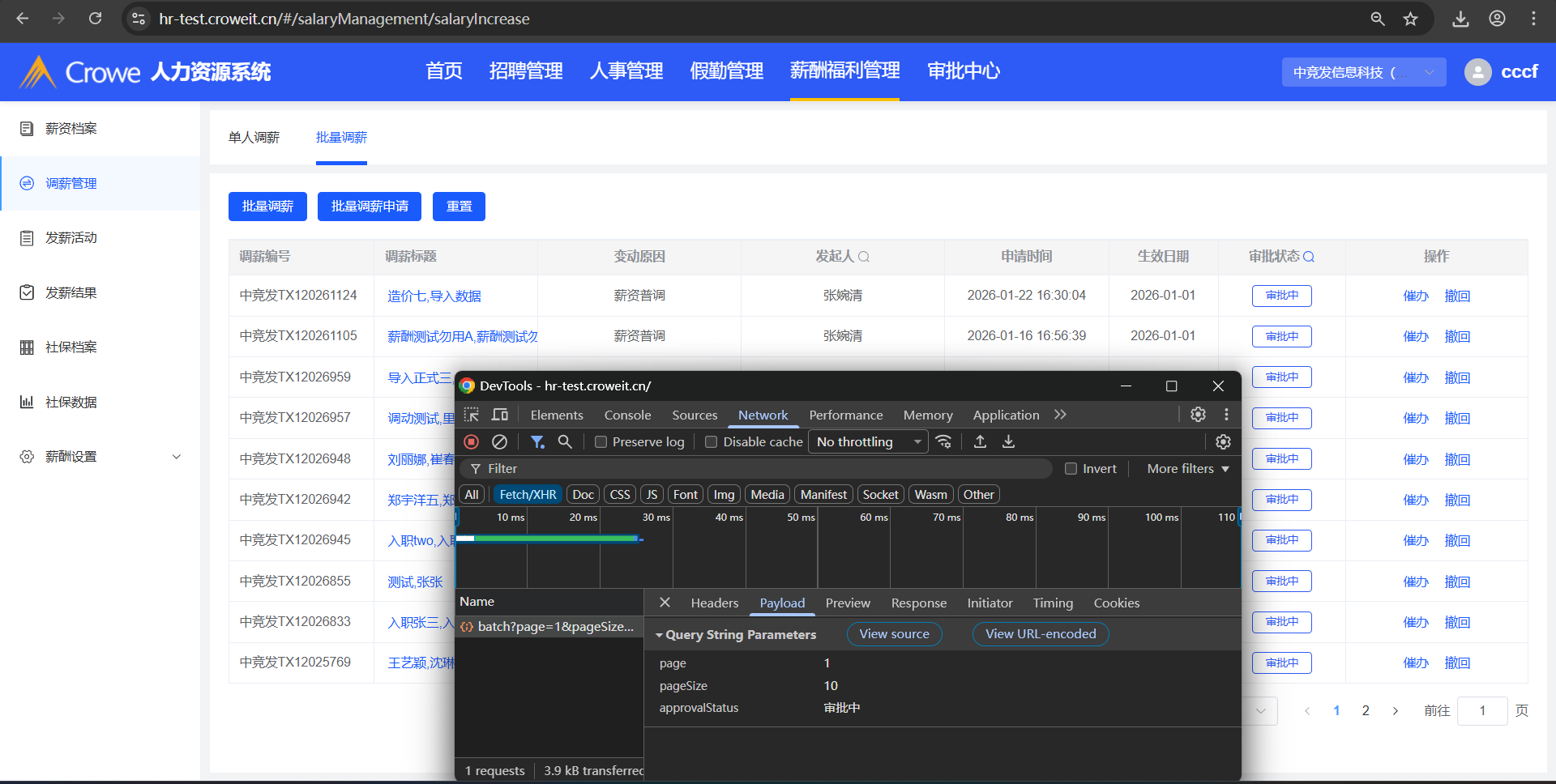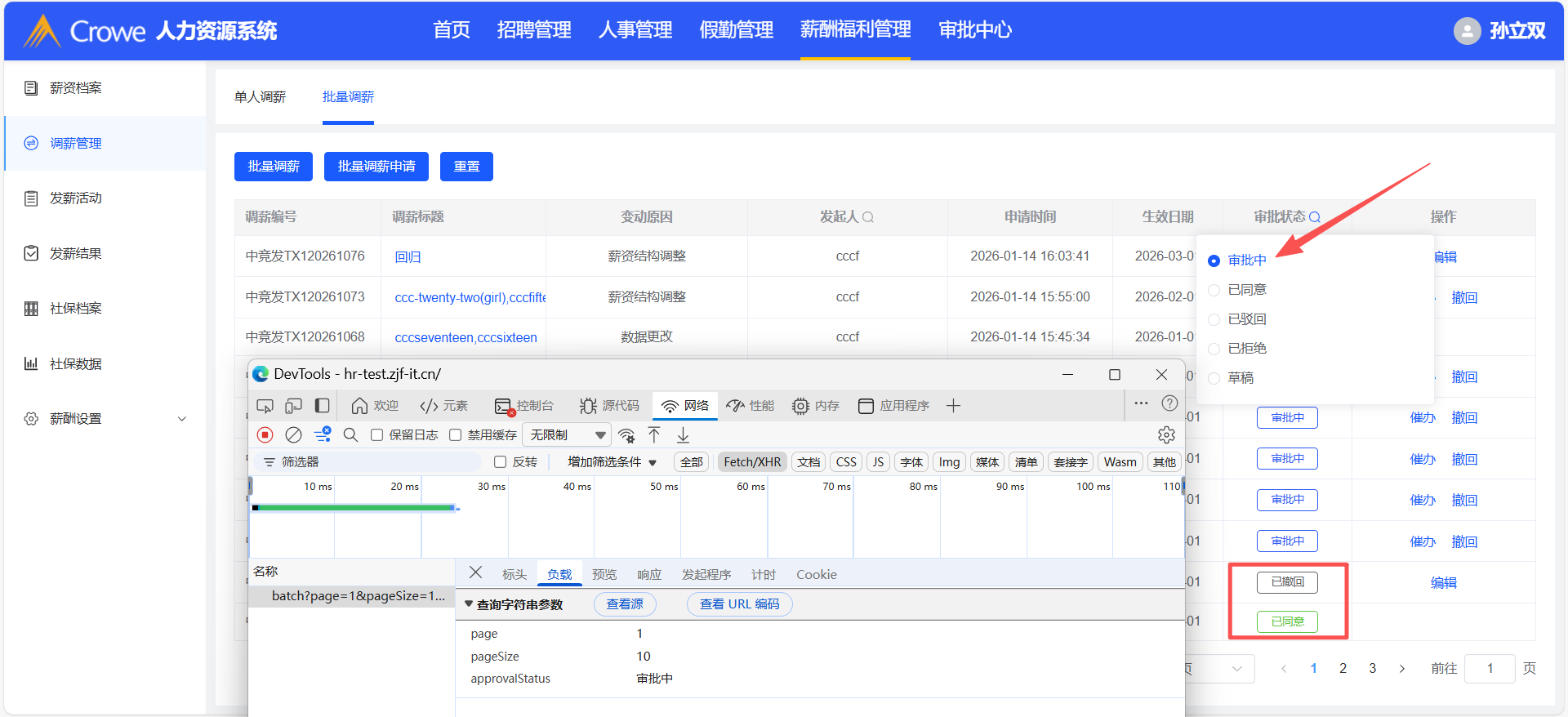 人力资源系统-薪酬福利管理-调薪管理,批量调薪 按照审批状态搜索,搜索结果不对