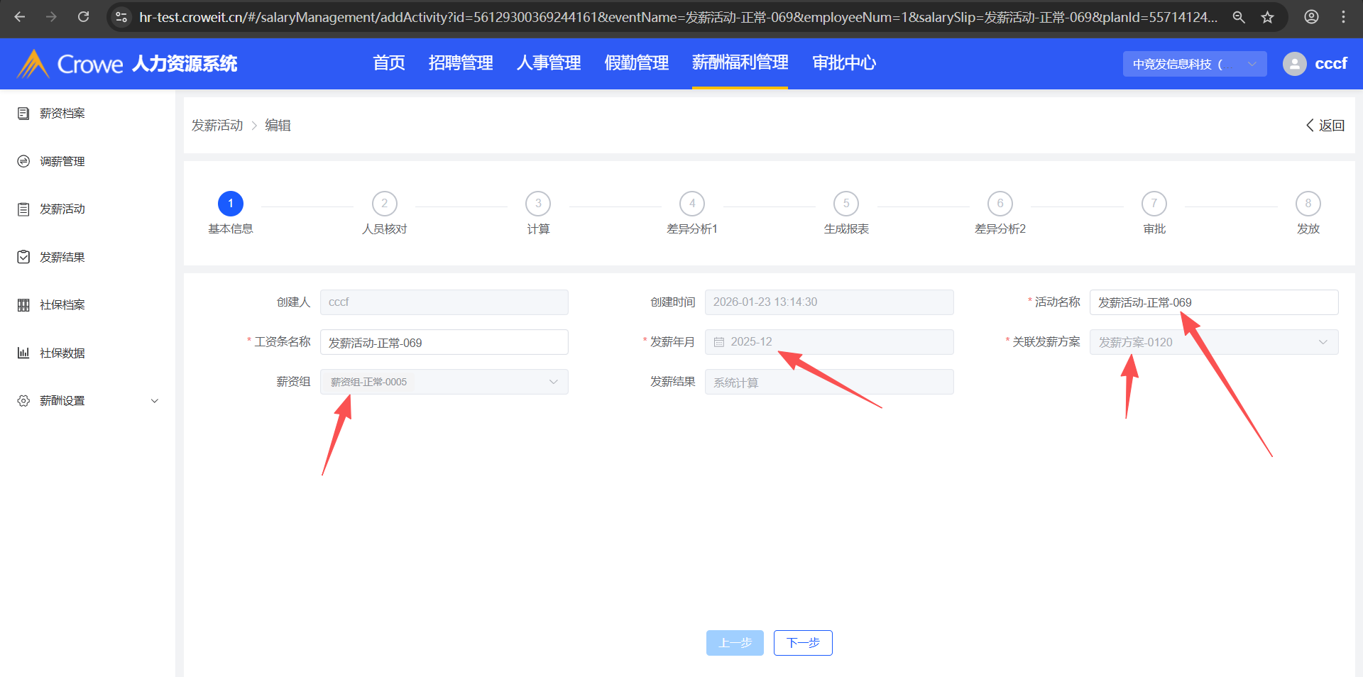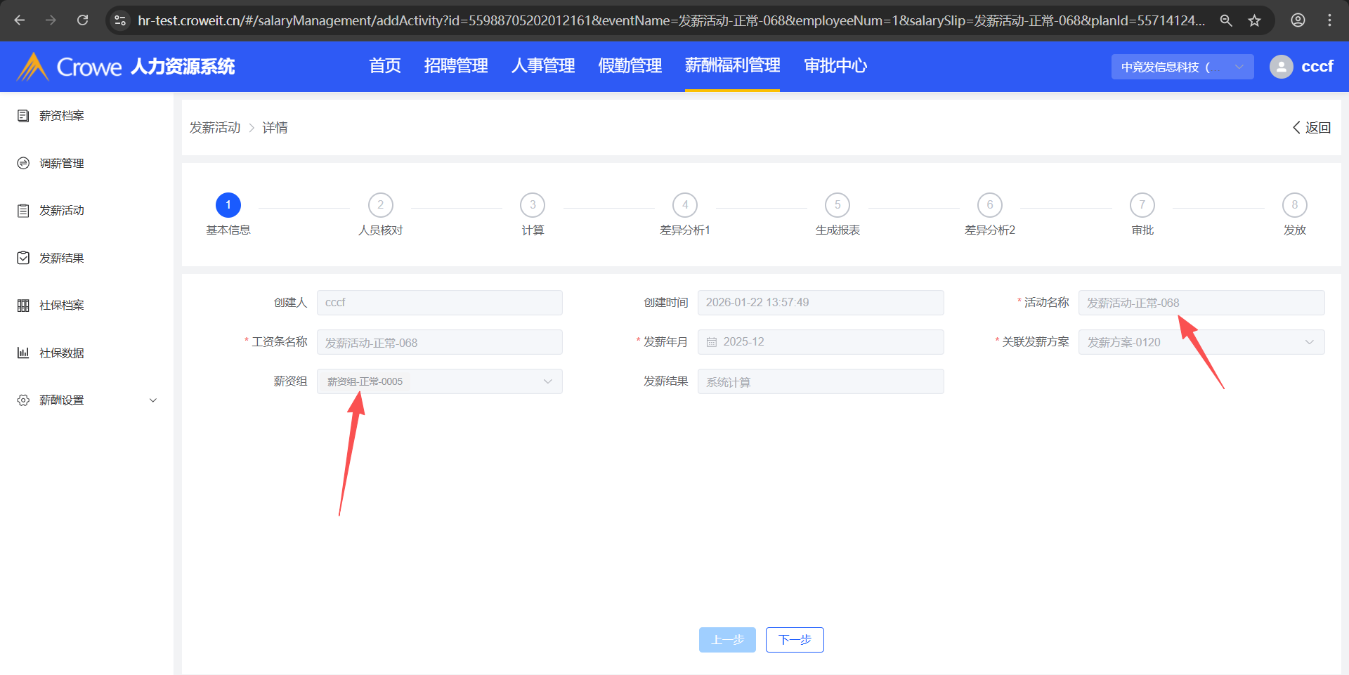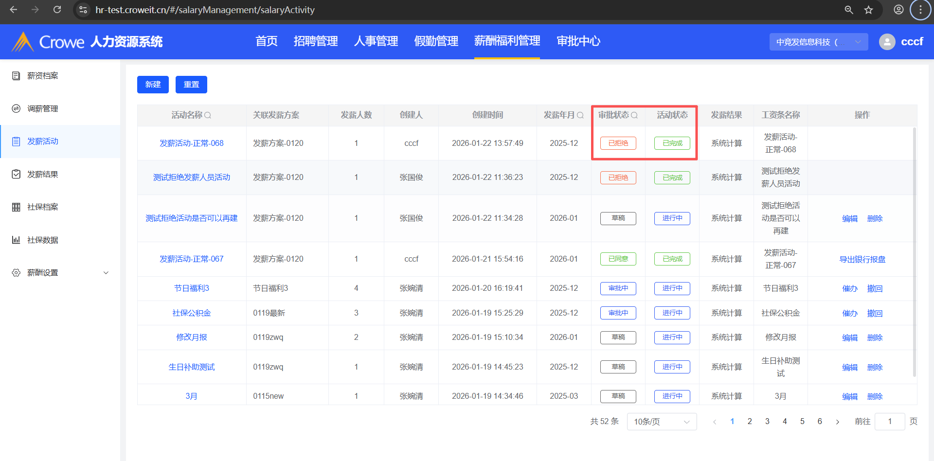 已关闭人力资源系统-薪酬福利管理-发薪活动,已拒绝的发薪活动(如:薪资组含员工张三),1、活动状态改为:已完成,2、重新新建发薪活动仍可以选择薪资组含员工张三