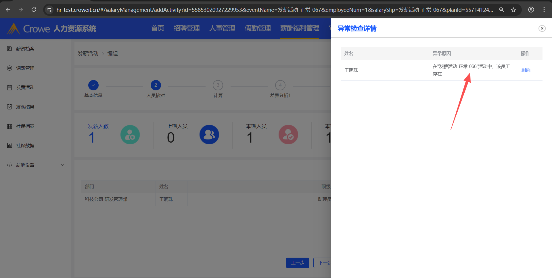 回归测试:不通过,问题2仍存在,即:已拒绝的发薪活动(如:薪资组含员工张三),重新新建发薪活动选择不了薪资组含员工张三