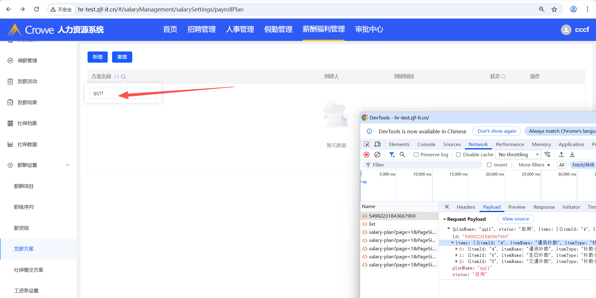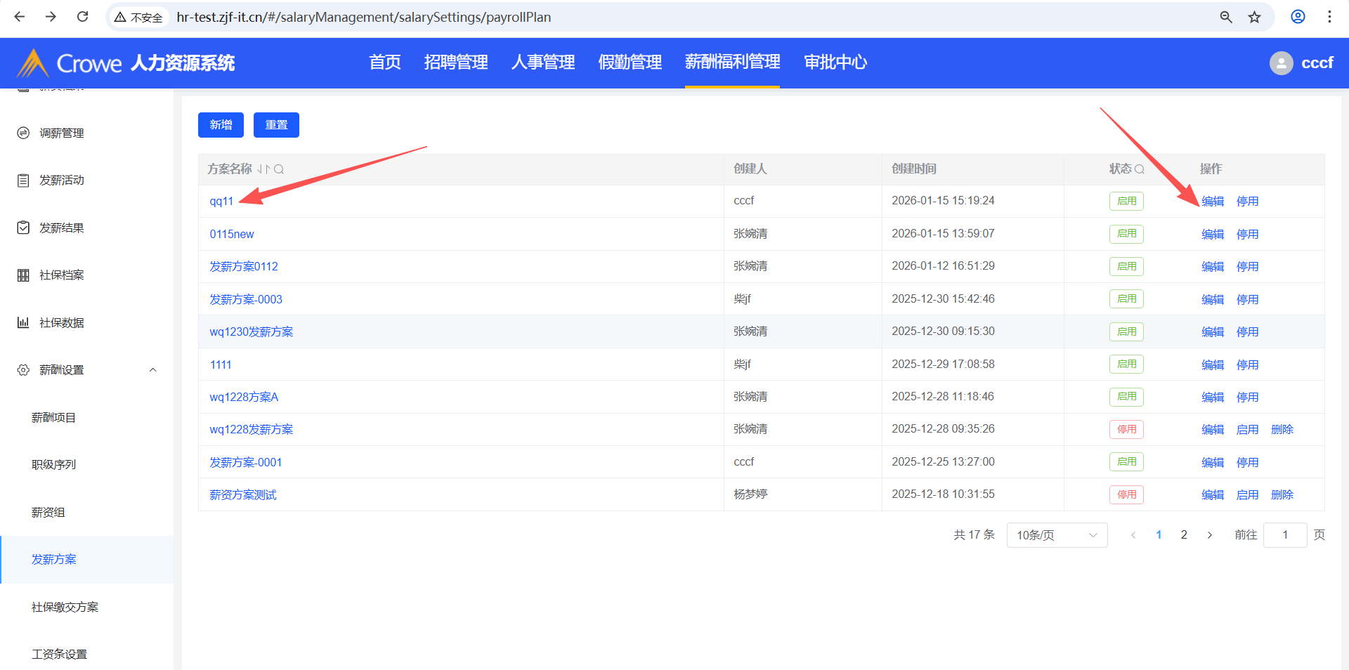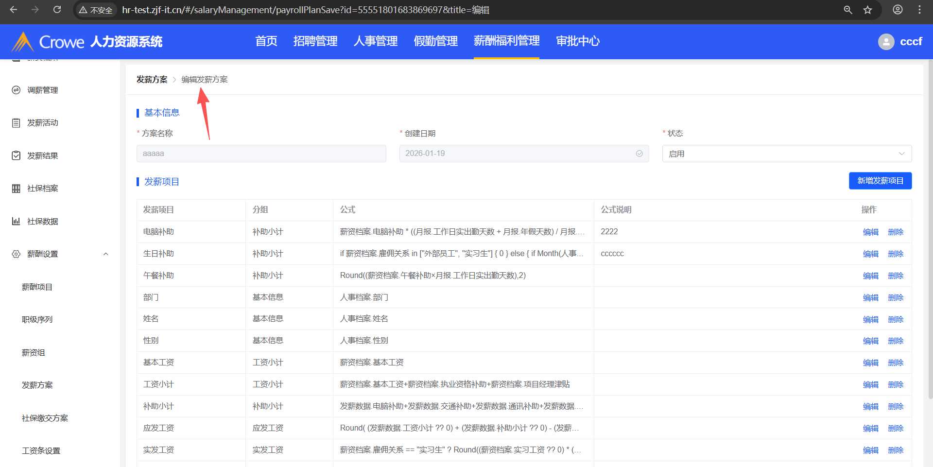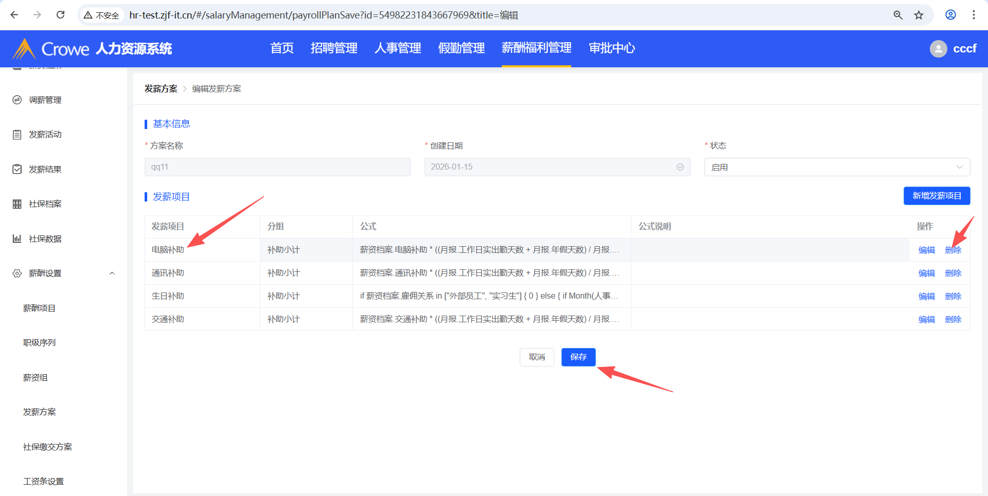已关闭人力资源系统-薪酬福利管理-发薪方案,编辑发薪方案,在编辑页面的操作栏 删除某个发薪项目后保存,整个发薪方案都被删除了