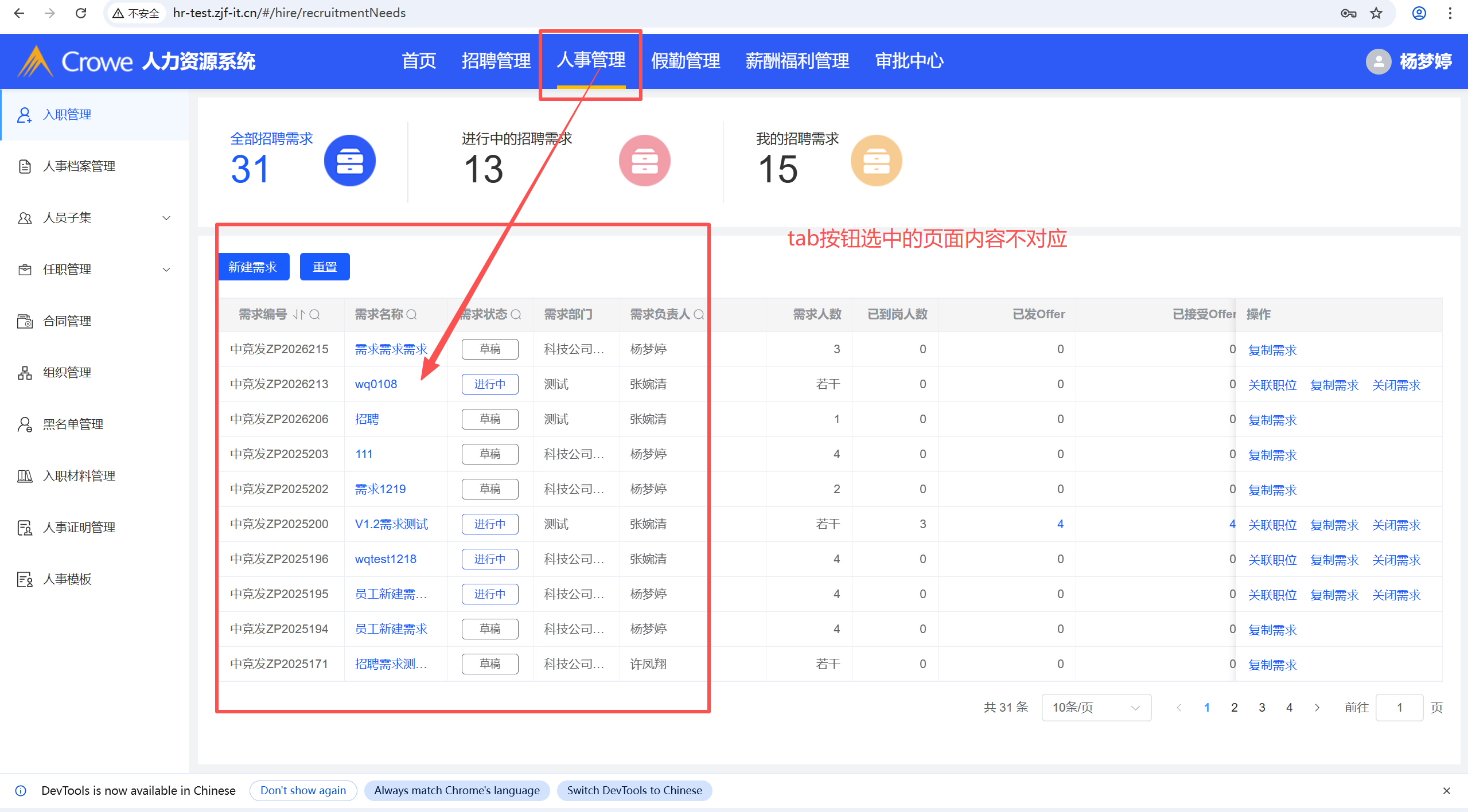 人事-切换页面顶部的TAB按钮,页面跳转有问题,检查可能是资源文件服务问题