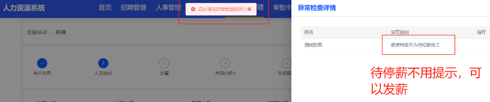 经与产品确认:待停薪员工可以正常发薪资,异常检查中不用提示;