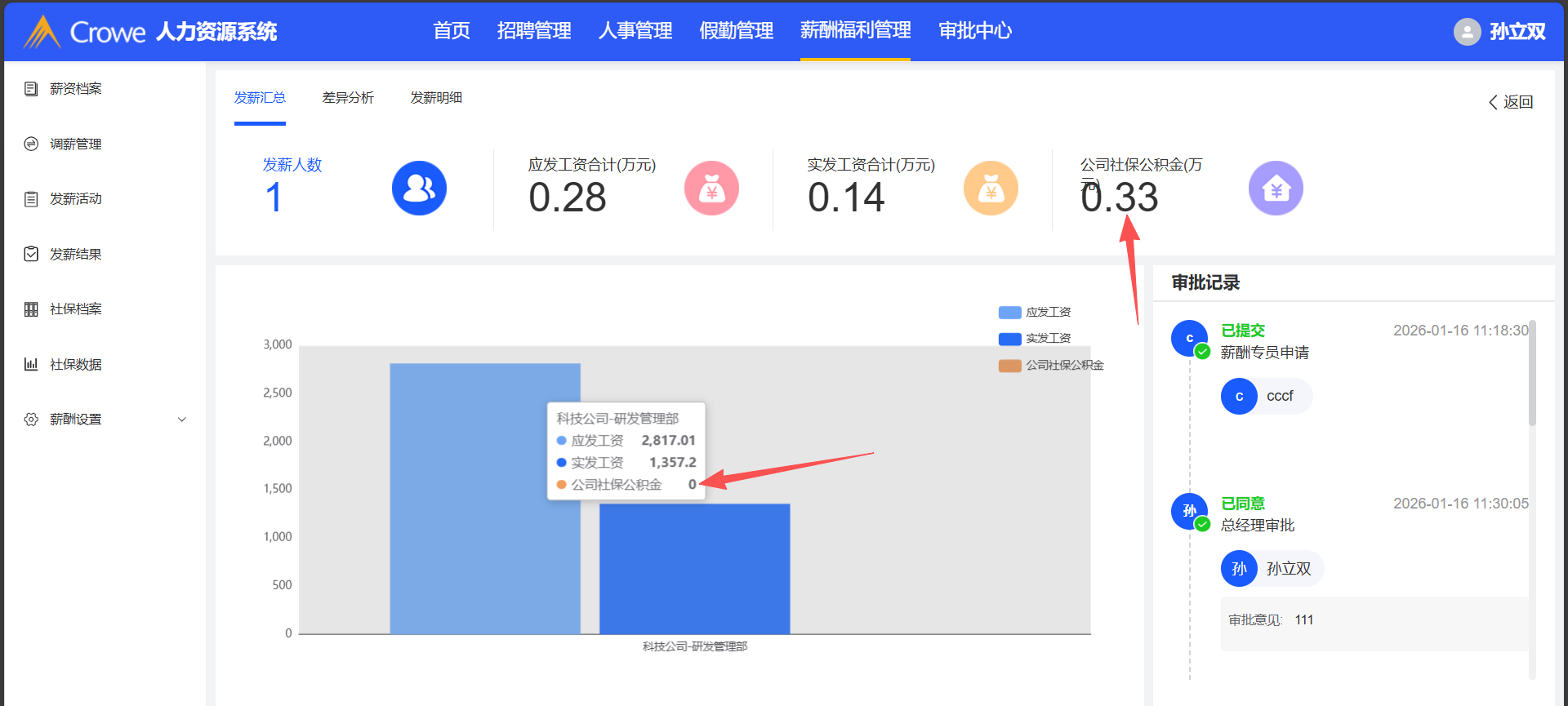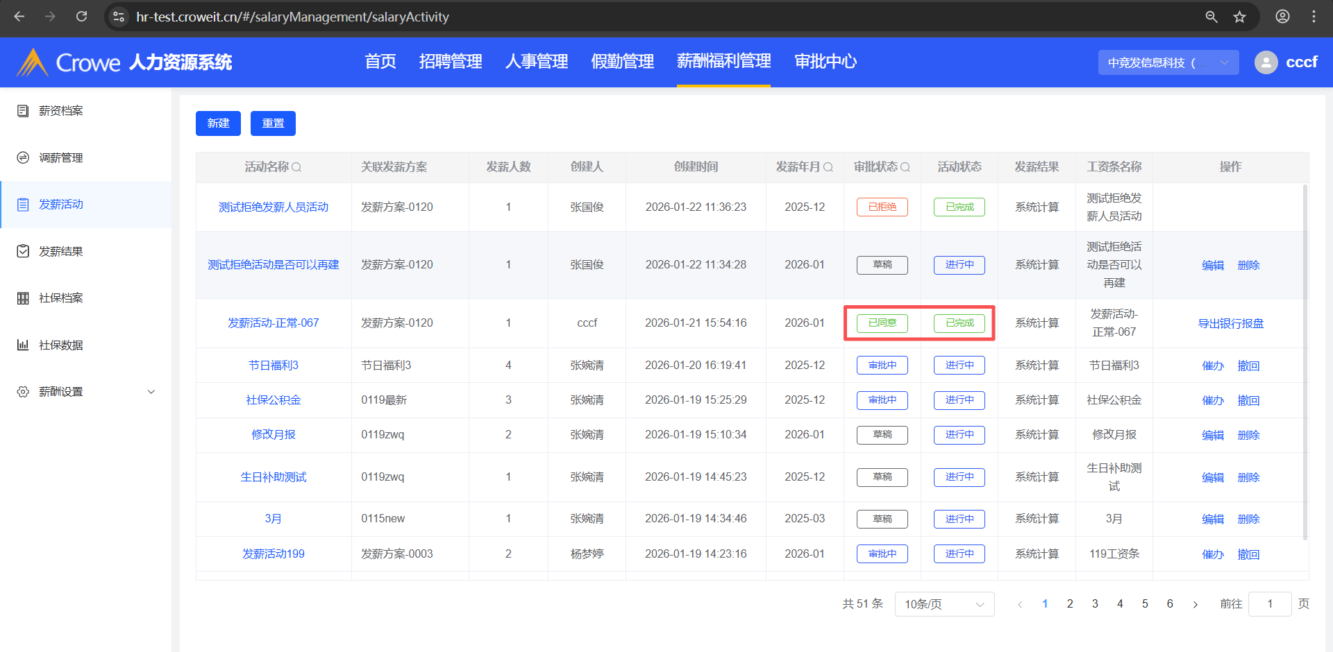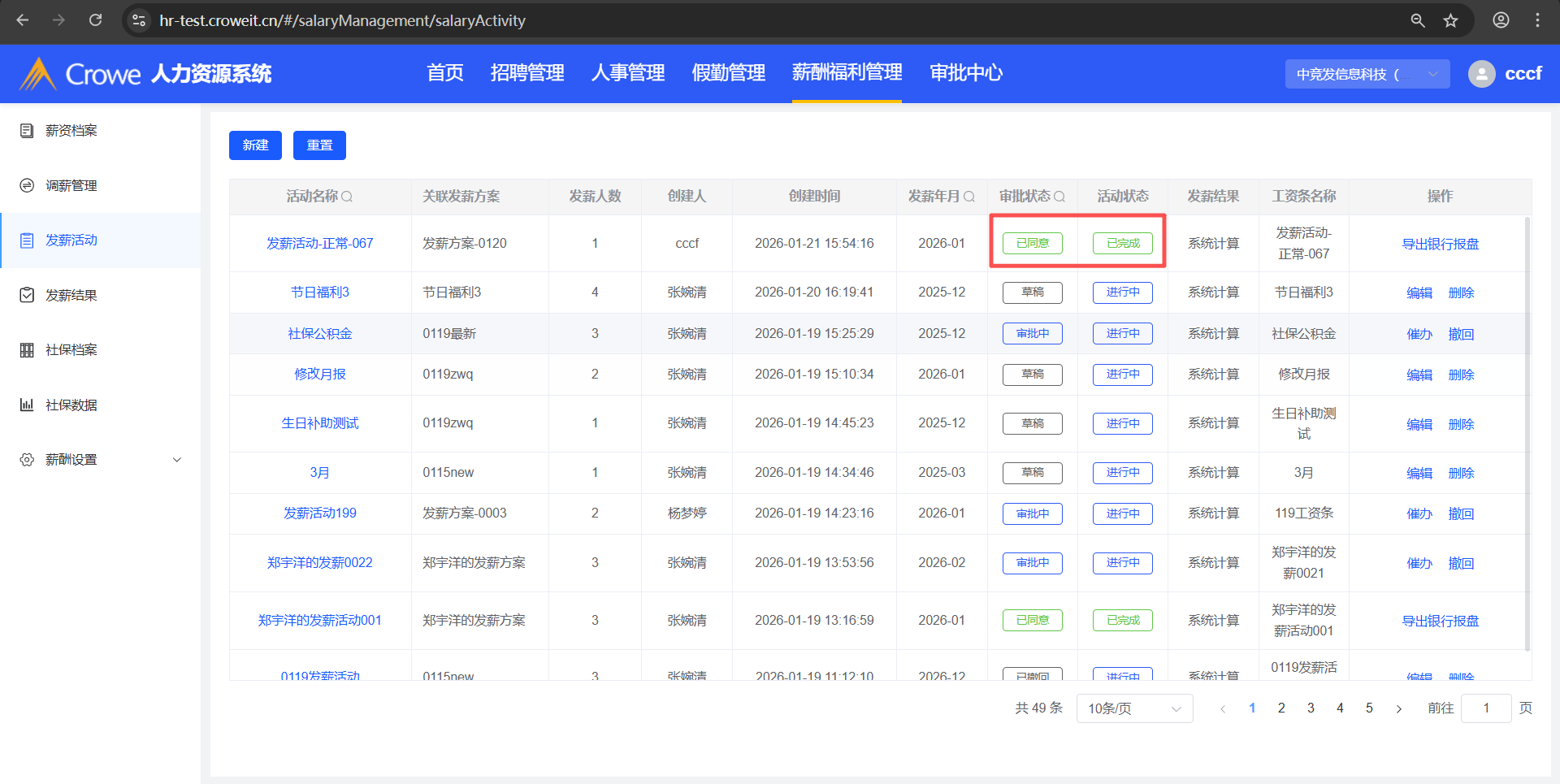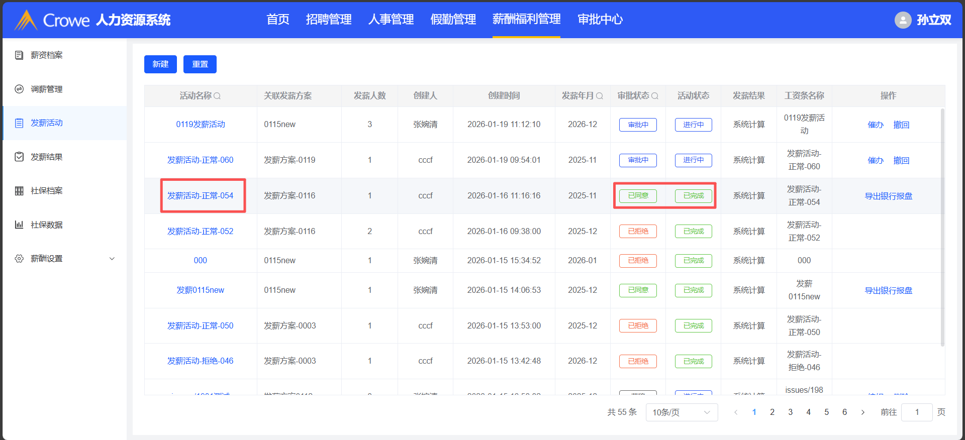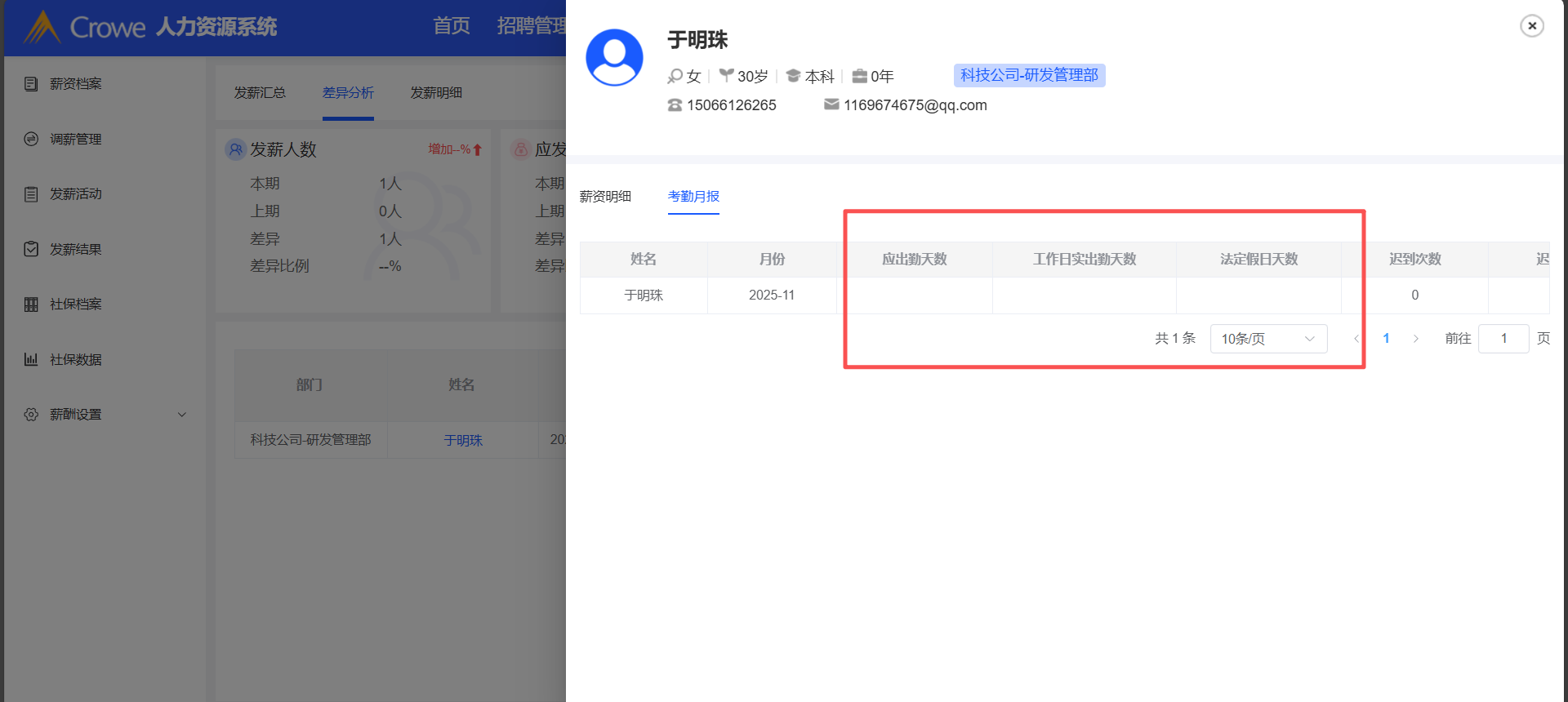 已关闭人力资源系统-薪酬福利管理,已完成的发薪活动详情,1、发薪汇总公司社保公积金值对不上 2、差异分析实发工资值对不上 3、差异分析员工的考勤月报空白处无值,预期有值