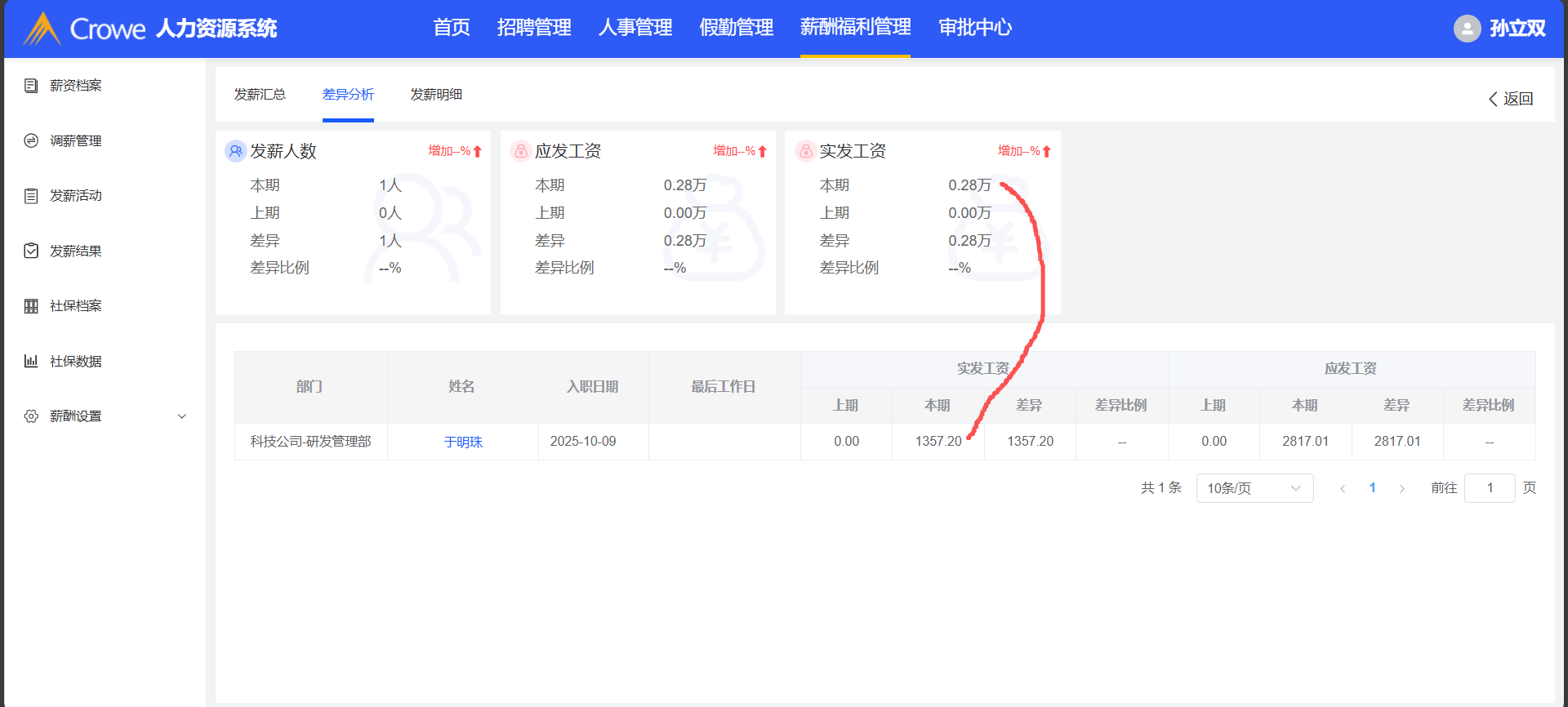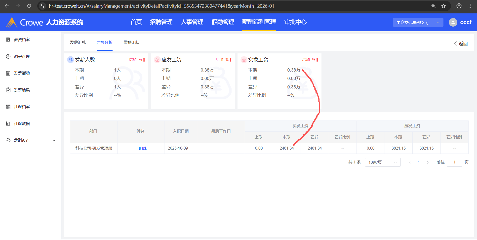 回归测试:不通过,仍存在问题2:差异分析实发工资值对不上