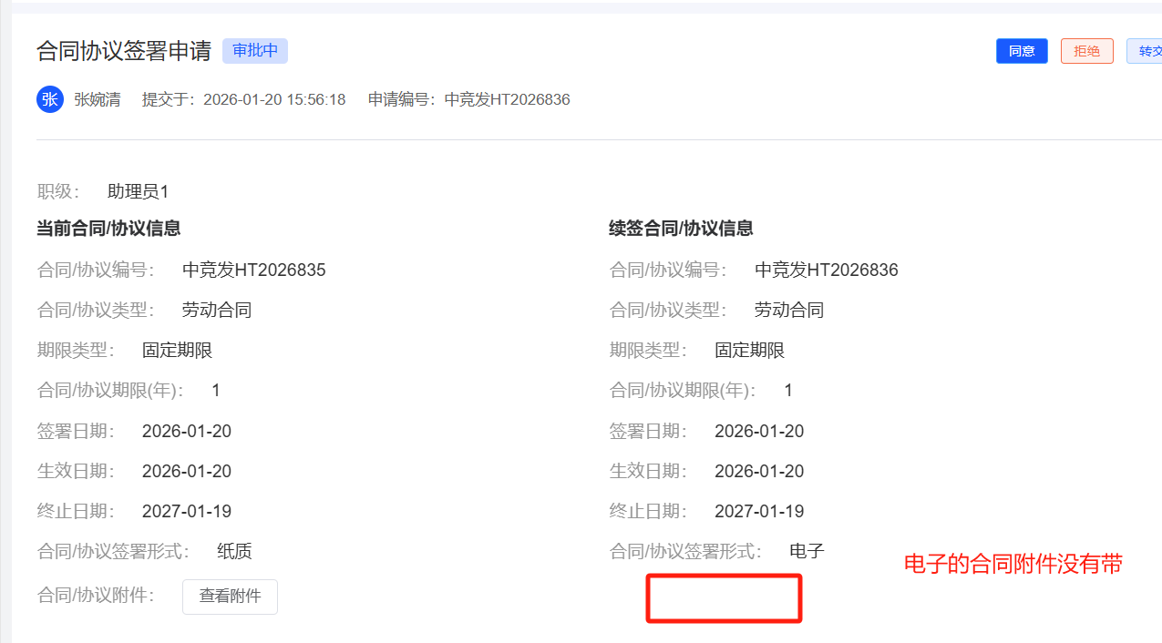 员工自助-合同:电子的合同无法查看附件