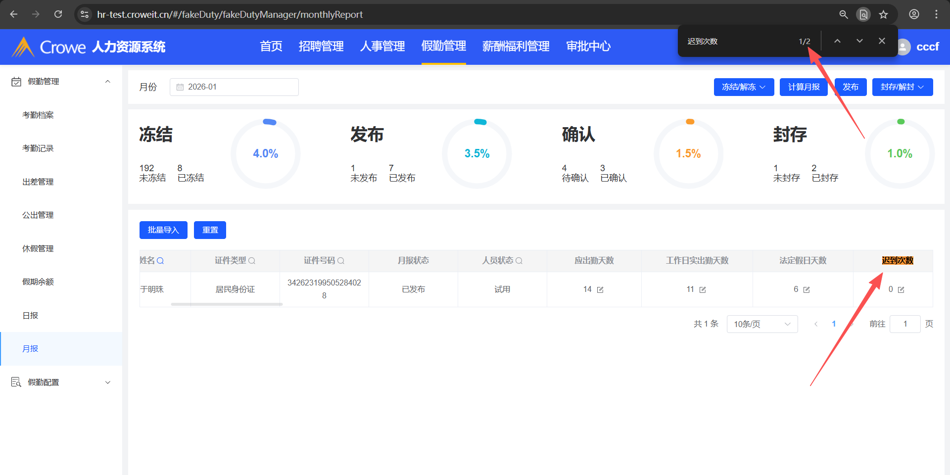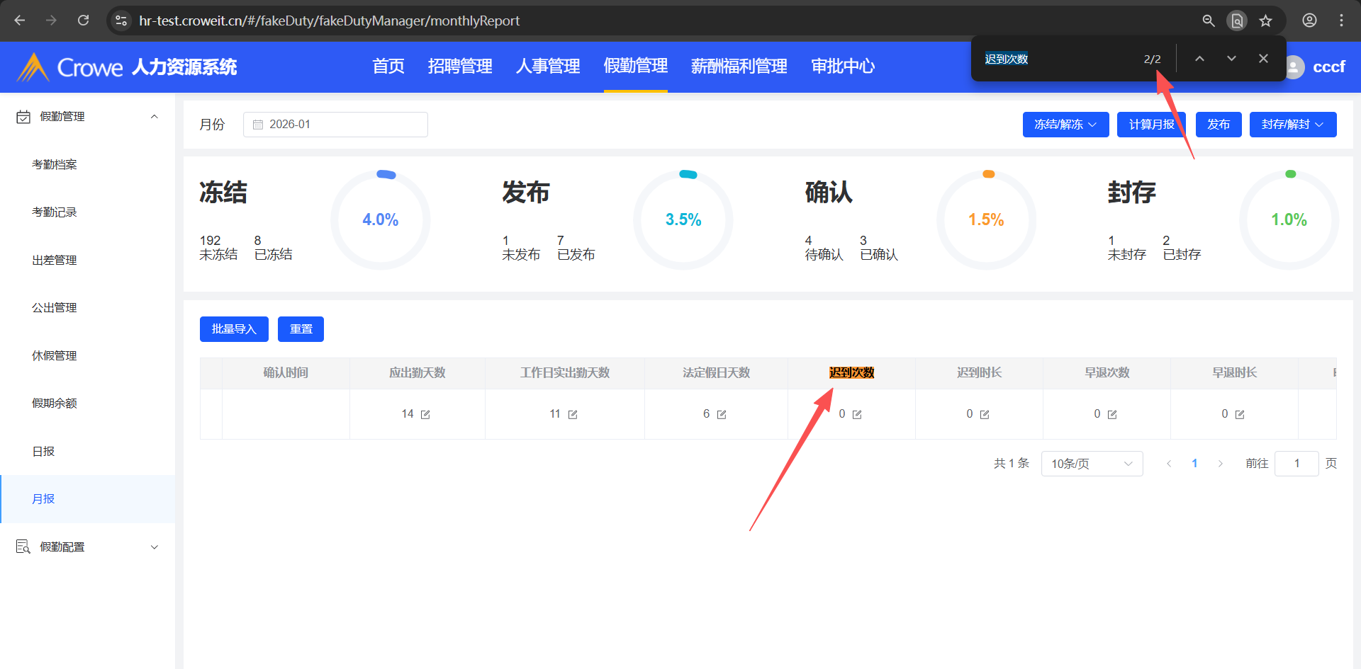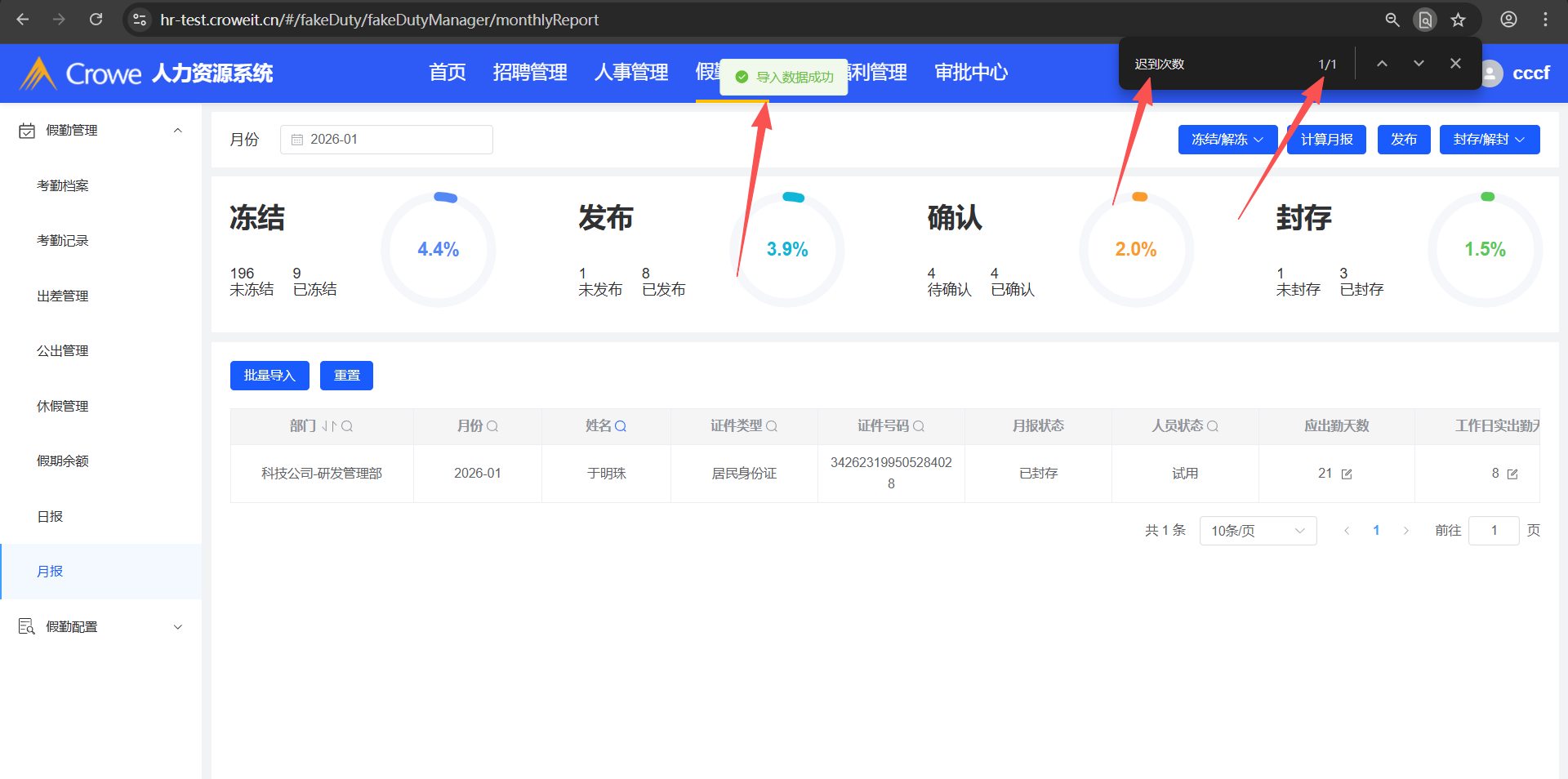 人力资源系统-假勤管理-月报,批量导入后,列表显示了相同的2列(如:迟到次数有2列)