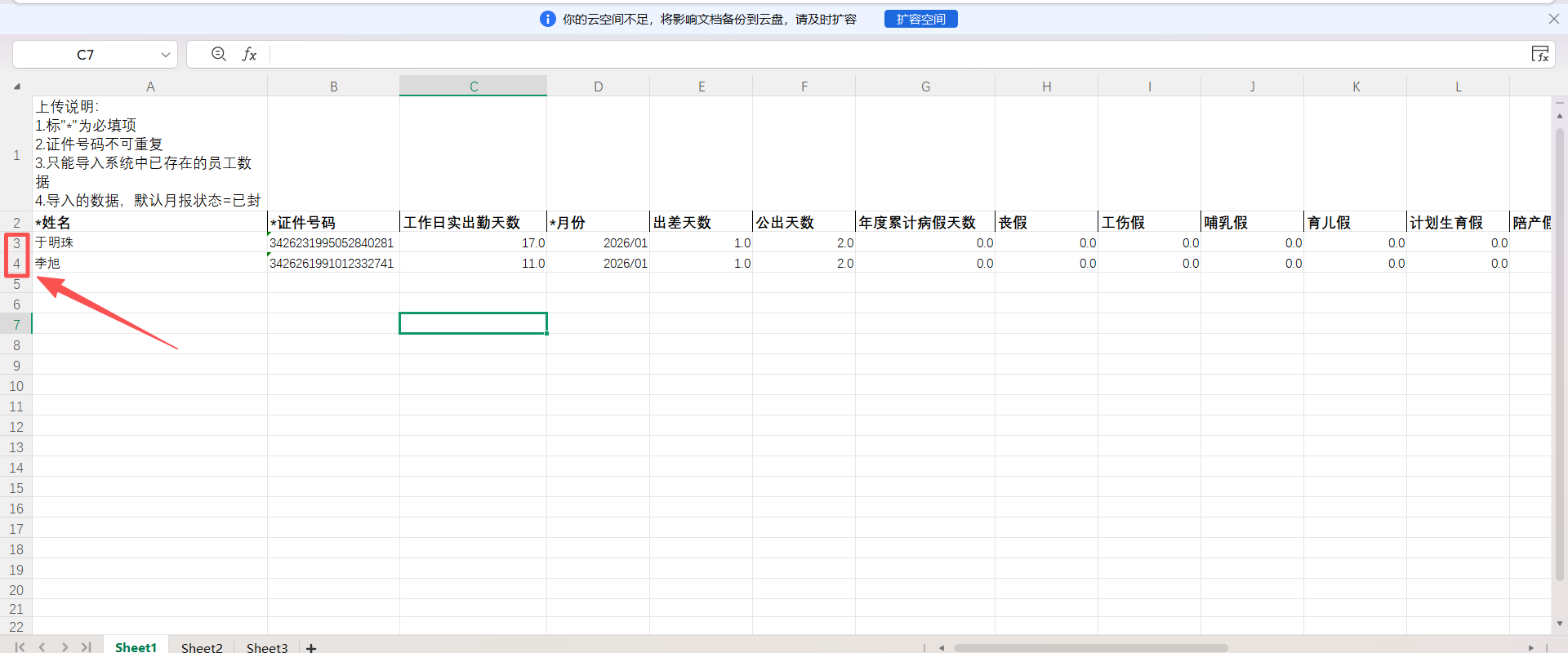 • 主题人力资源系统-假勤管理-月报,批量导入,错误提示-错误行数都显示的0,预期显示错误行数:2、3 变更为 人力资源系统-假勤管理-月报,批量导入,错误提示-错误行数都显示的0,预期显示错误行数:2、3。异常文件如下正文。
