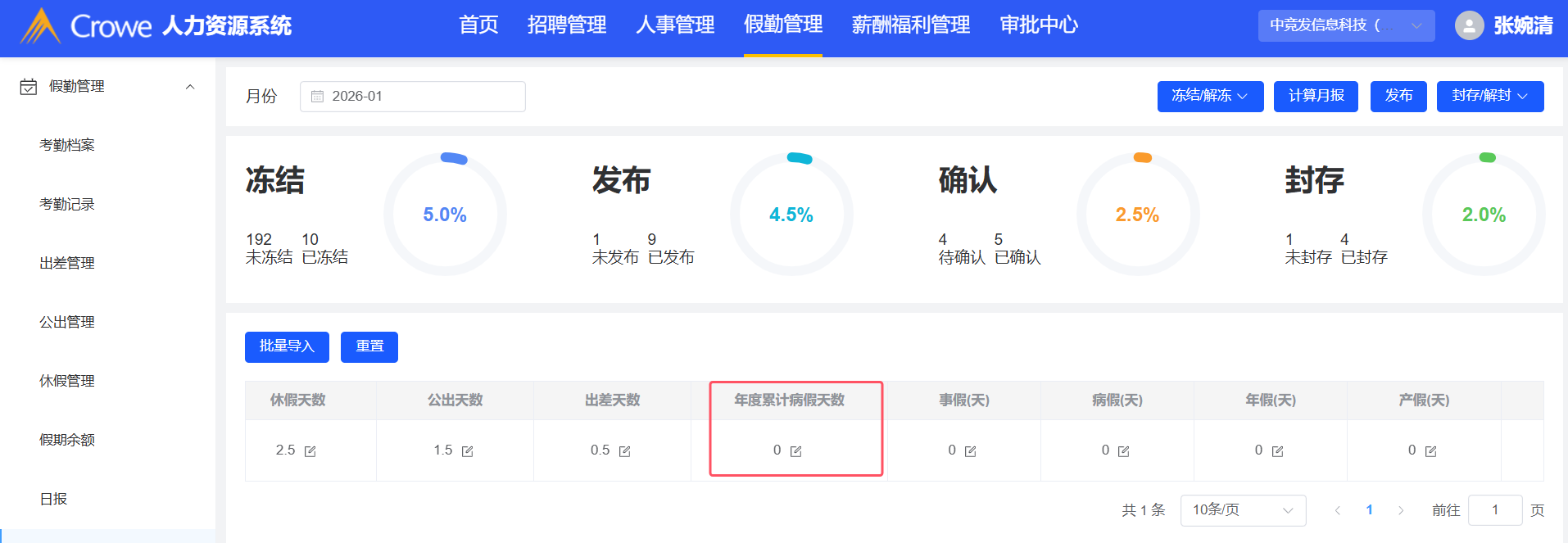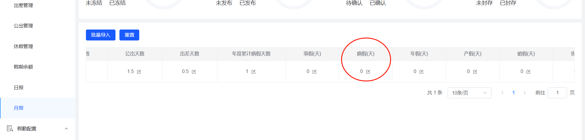 假勤管理-年度累计病假数据未显示