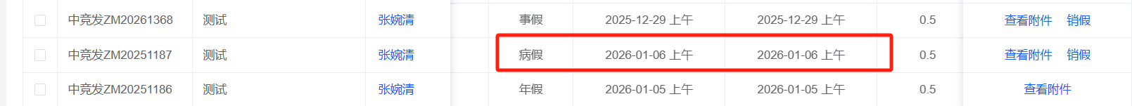 单独的病假未显示