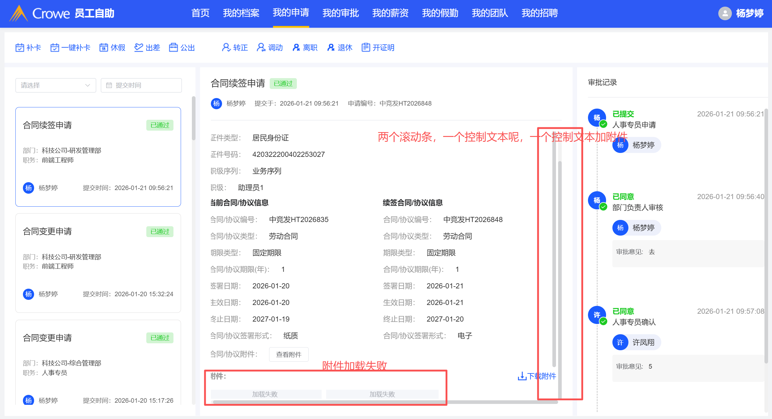 员工自助-合同续签申请表单前端样式调整