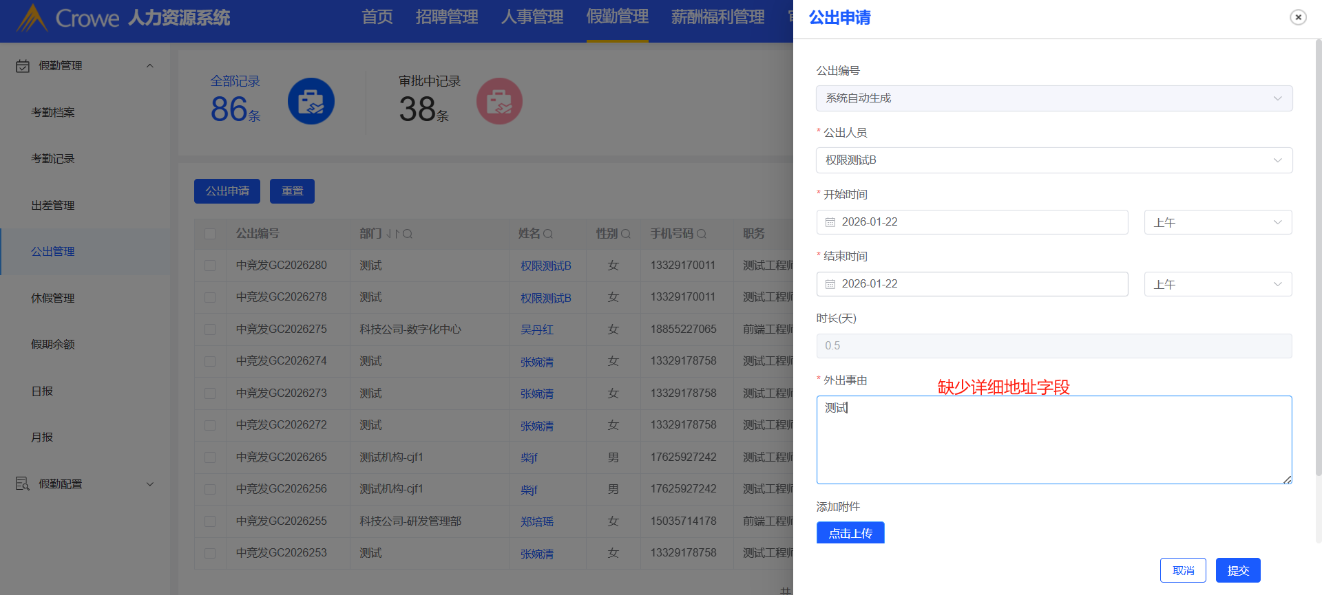 已关闭假勤管理-公出管理:缺少详细地址字段