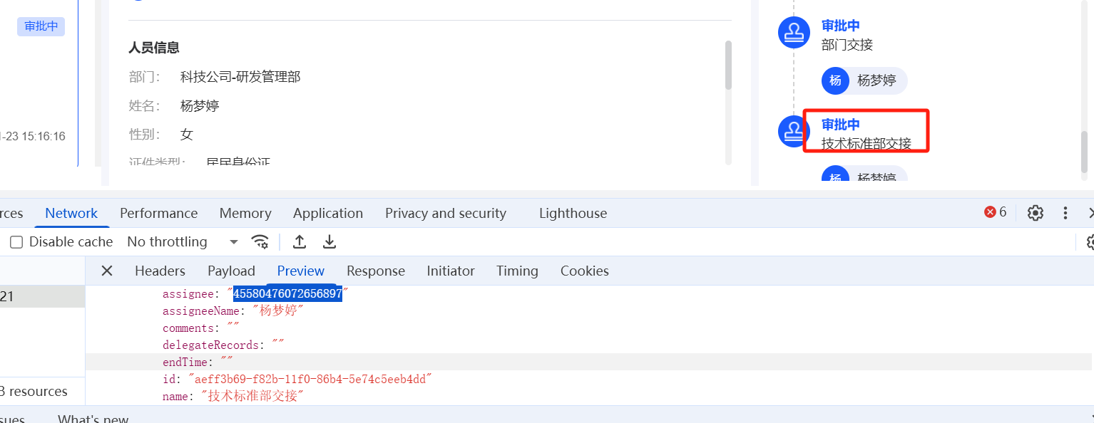 员工自助-离职申请:技术标准部显示的审批人员与数据库中配置的人员不同