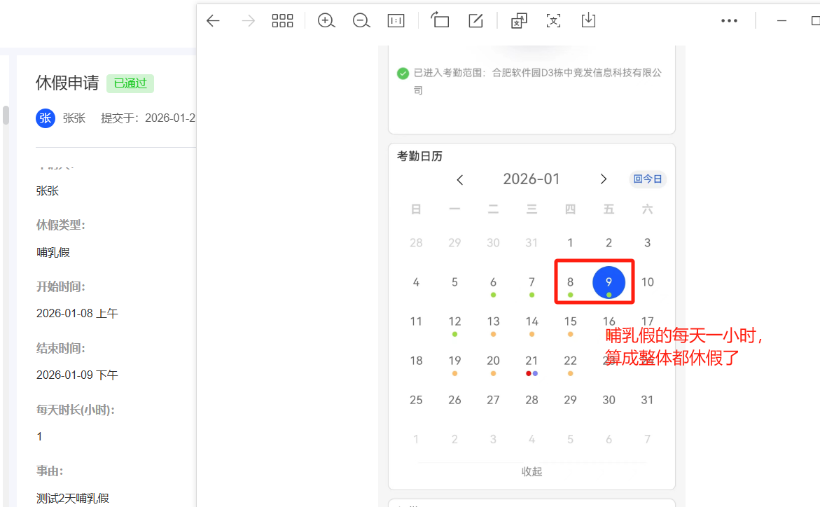 打开员工自助-哺乳假:哺乳假的一小时,目前考勤一天都是正常的,应是出勤时间少一个小时算考勤状态算正常(早来或者晚走)