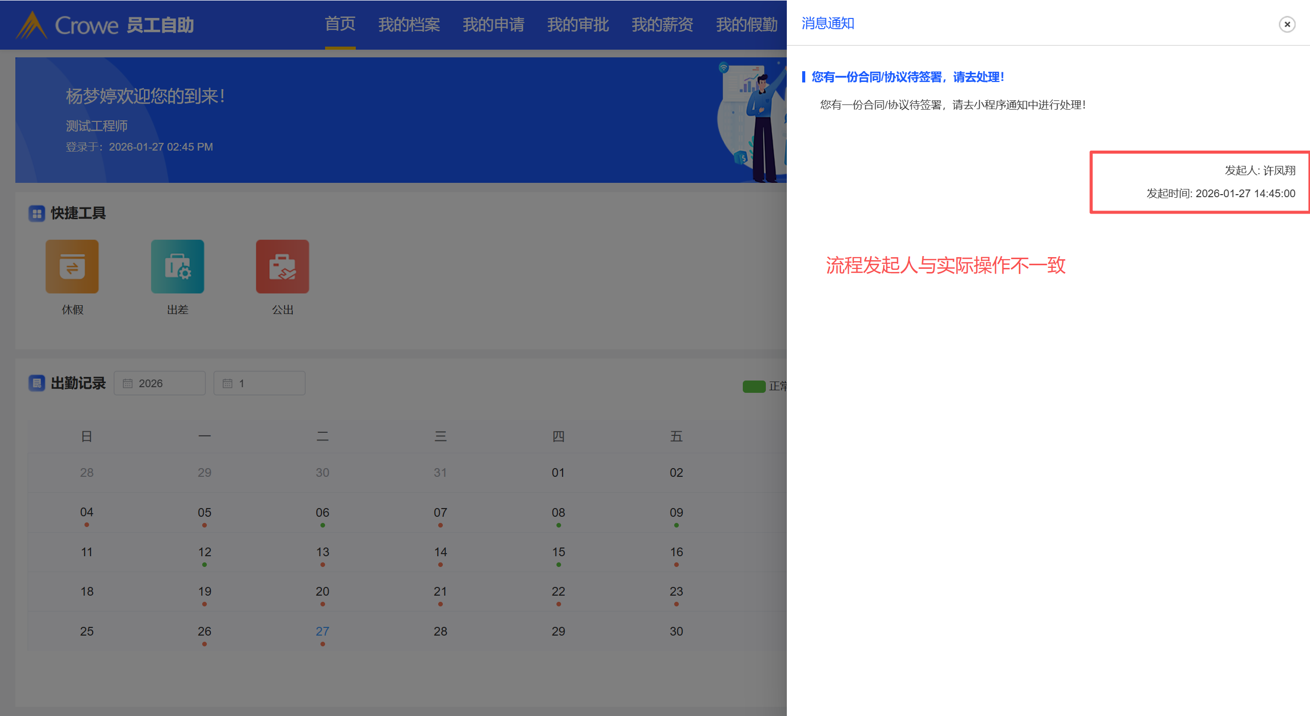 合同签署通知的发起人不是合同变更发起人,要与实际发起人一致
