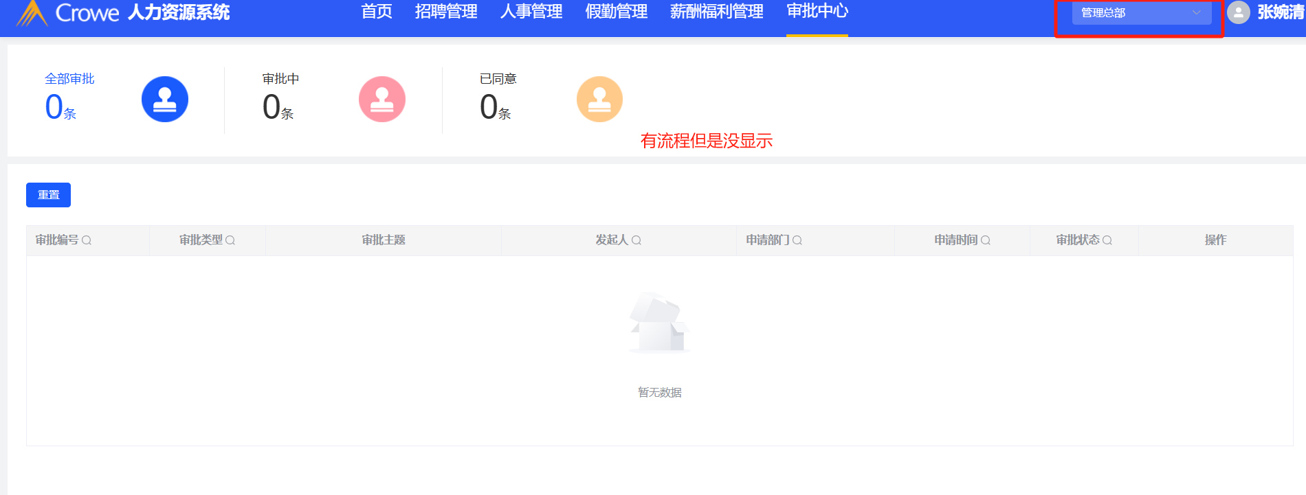 审批中心-切换公司:审批中心有流程但是没显示