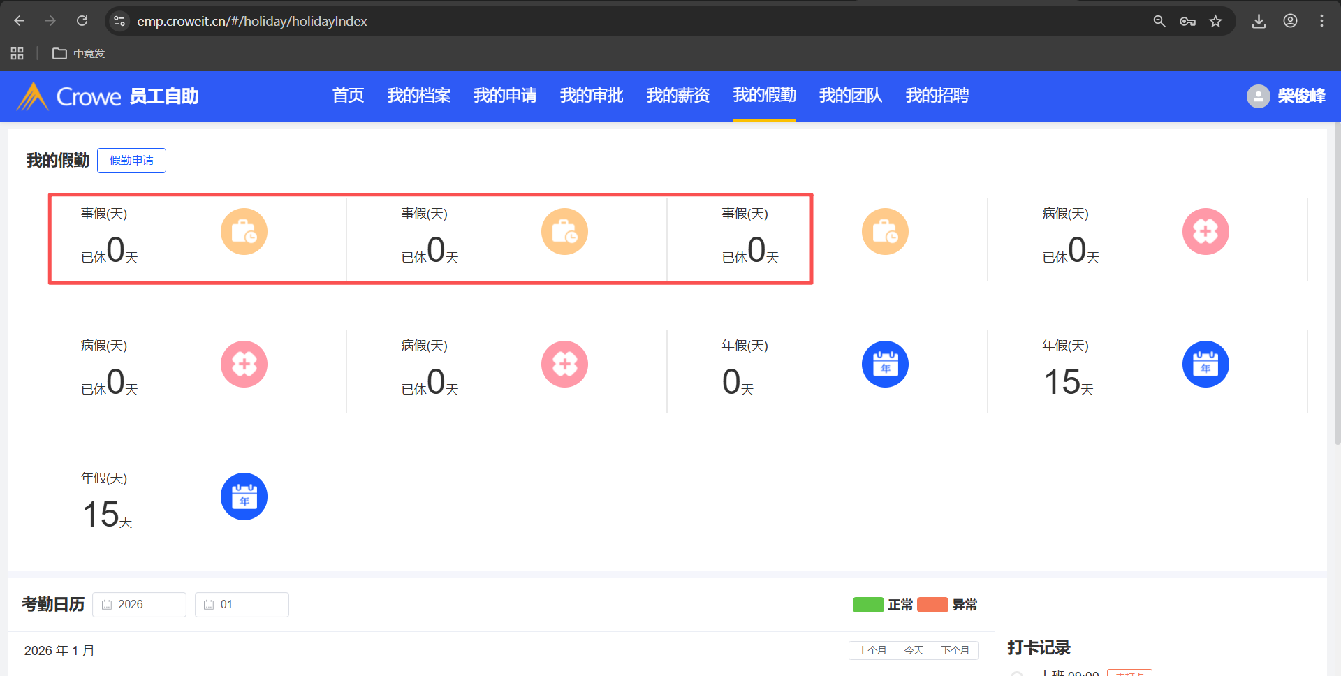 (生产)员工自助-我的假勤,出现了多条重复的数据,如:事假