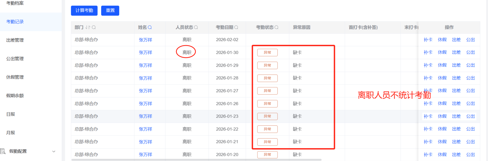 假勤管理-考勤记录:离职人员的考勤记录不需要