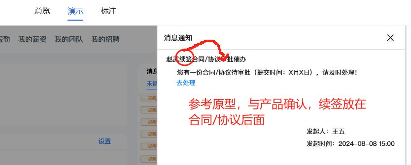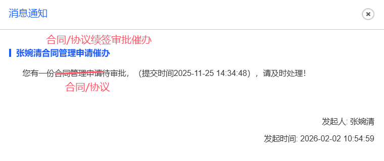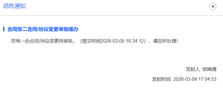 已关闭人事管理-合同管理:给审批人发送的合同催办提醒,需要区分变更/续签