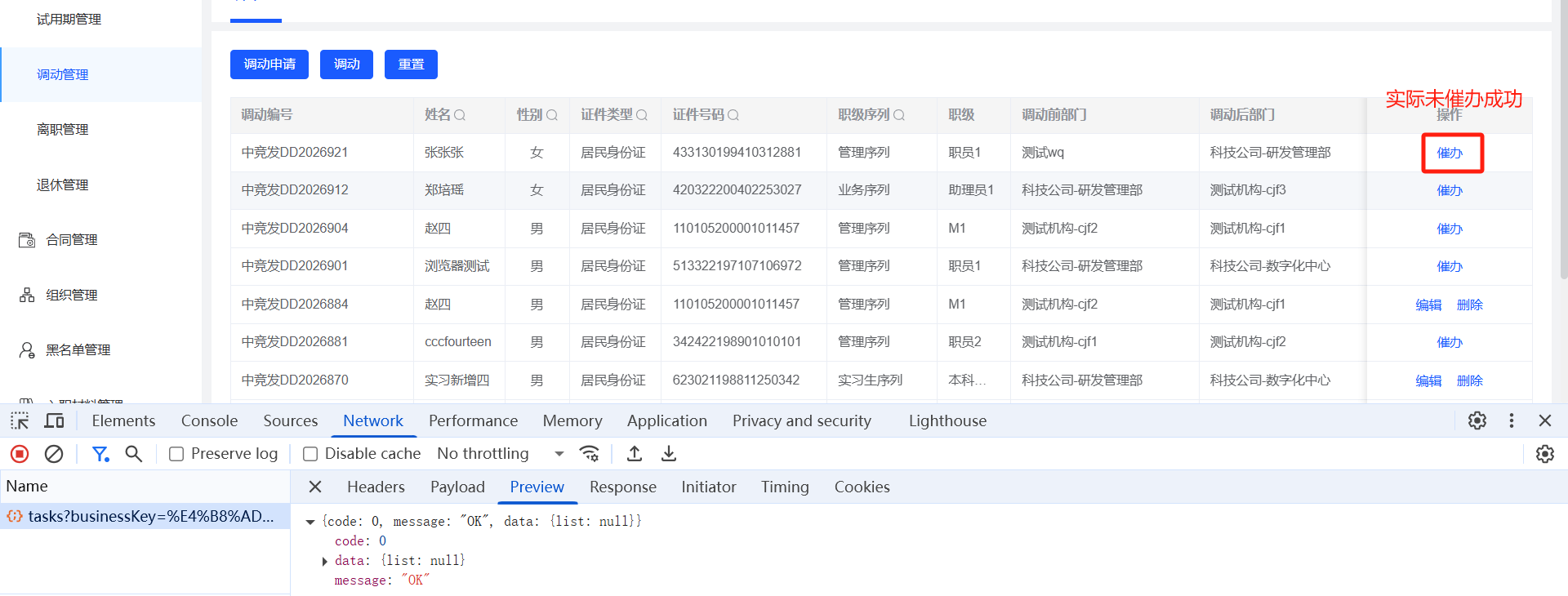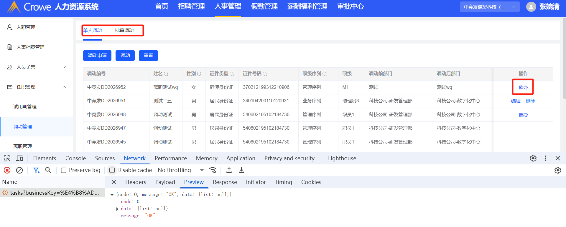 • 主题人事管理/调动管理:催办未生效 变更为 人事管理-调动管理/离职管理:催办未生效